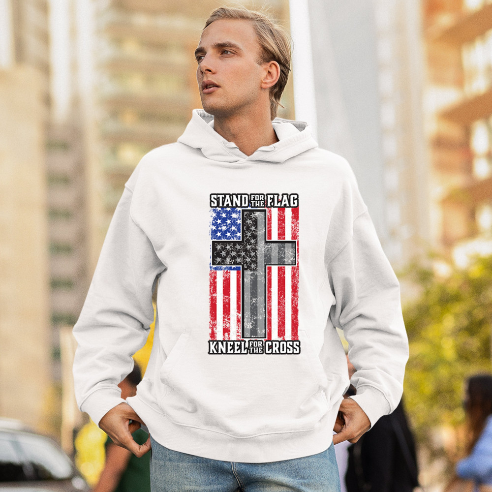 Embrace your identity as an American patriot and devout Christian with our Stand for the Flag Kneel for the Cross tee, a powerful testament to your values. Crafted with the American flag and the sacred cross, this design serves as both Trump merchandise and a symbol of unwavering faith. Whether you're a veteran, active military member, or simply a defender of liberty, this shirt proudly upholds the principles of the Second Amendment while honoring the legacy of Jesus Christ.