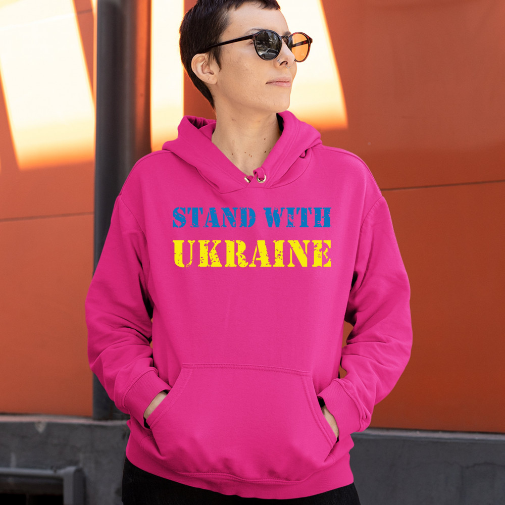 STAND WITH UKRAINE sweatshirt stop war support ukrainians hoodie pink
