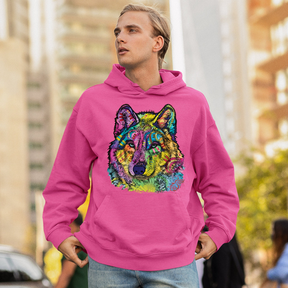 STARE OF THE WOLF sweatshirt dean russo colorful neon animal art hoodie pink
