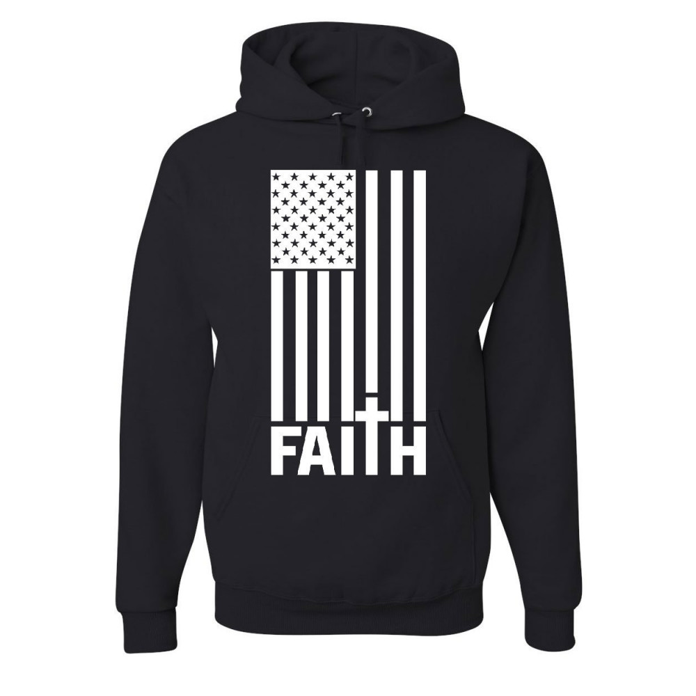 STARS AND STRIPES FAITH hoodie american values cross jesus god sweatshirt black