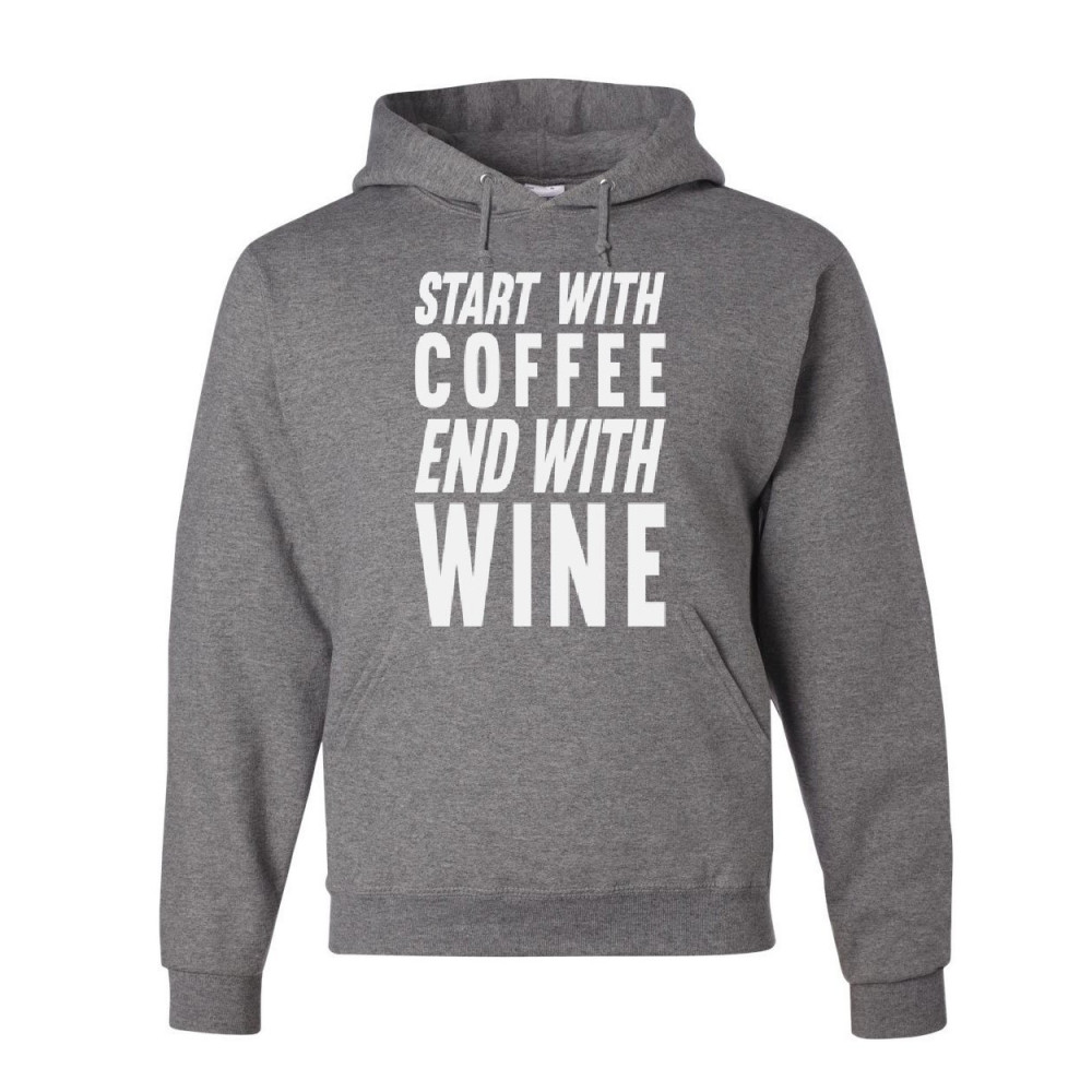 START WITH COFFEE END WITH WINE hoodie drinking daily routine sweatshirt gray
