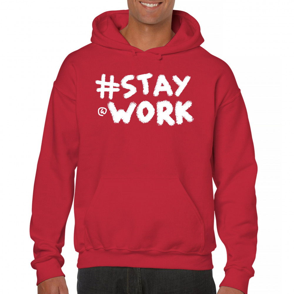 STAY AT WORK FUNNY ELON MUSK TWEET PARODY sweatshirt liberal sarcasm hoodie red