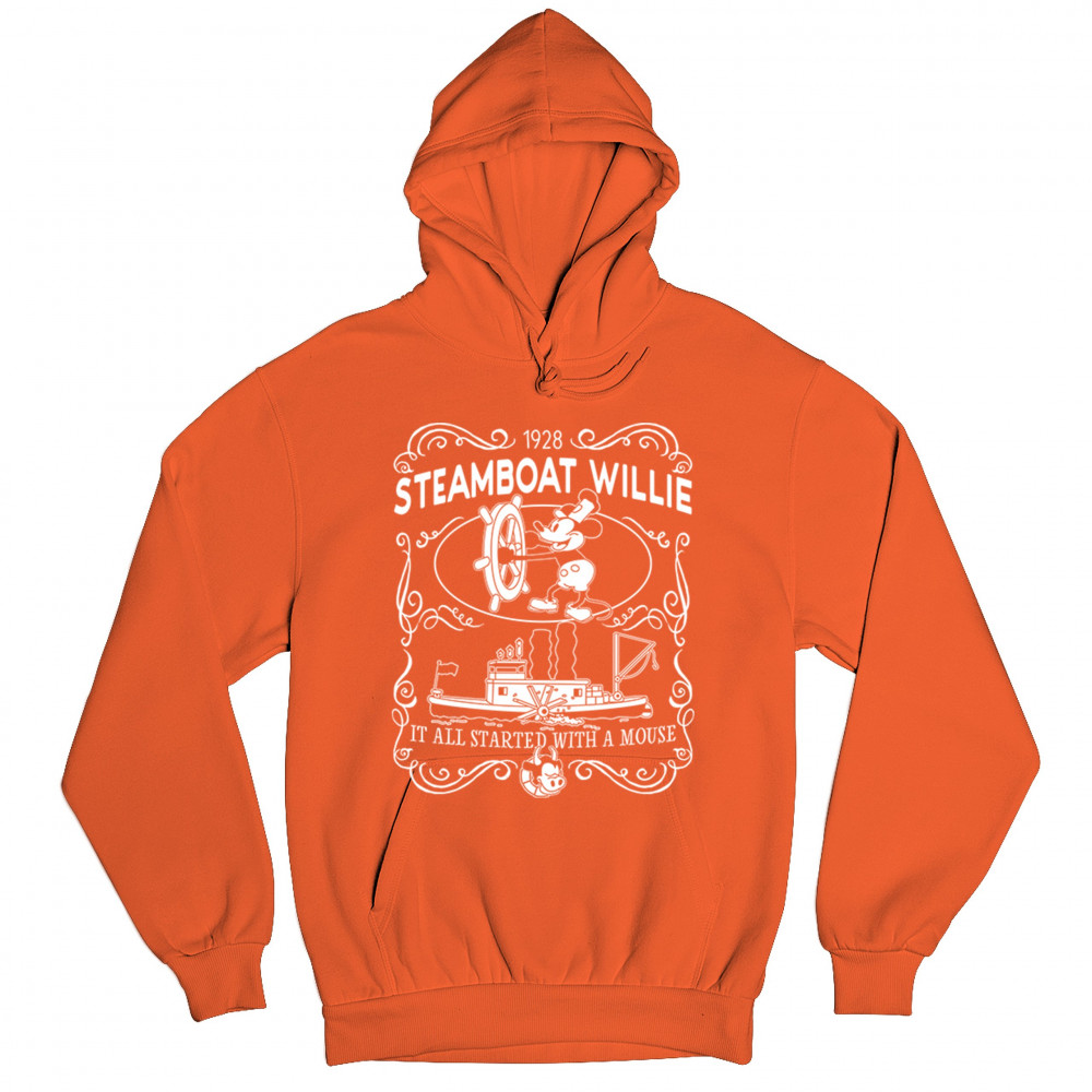 Set sail through the annals of animation as Steamboat Willie commands the vessel, echoing the timeless refrain, 'It all began with a mouse.