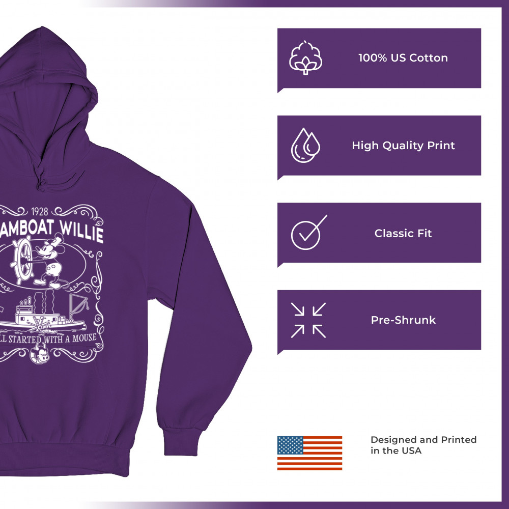 Navigate the waters of nostalgia with Steamboat Willie at the helm, accompanied by the enduring reminder, 'The magic traces back to a little friend.'