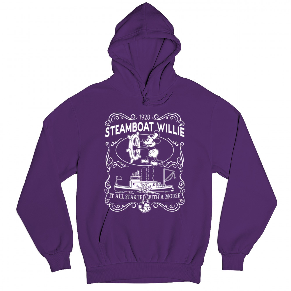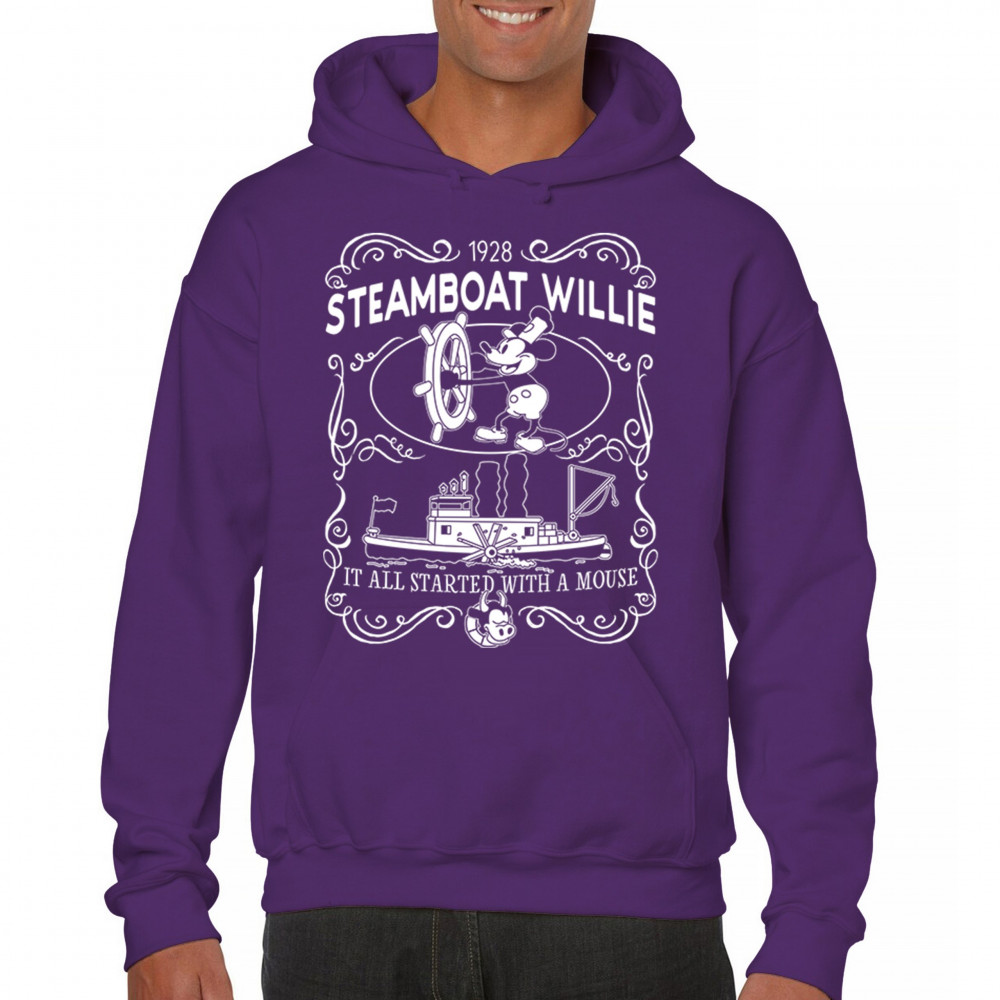 Set sail through the annals of animation as Steamboat Willie commands the vessel, echoing the timeless refrain, 'It all began with a mouse.