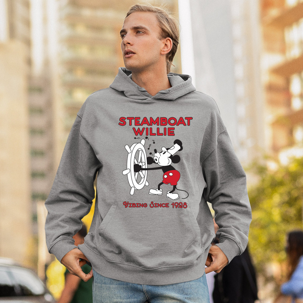 Join the vibe with our 'Steamboat Willie Vibing Since 1928' design, paying homage to the enduring charm of this iconic cartoon. Whether you're relaxing at the beach or keeping watch as a lifeguard, let Steamboat Willie inspire you with its timeless appeal
