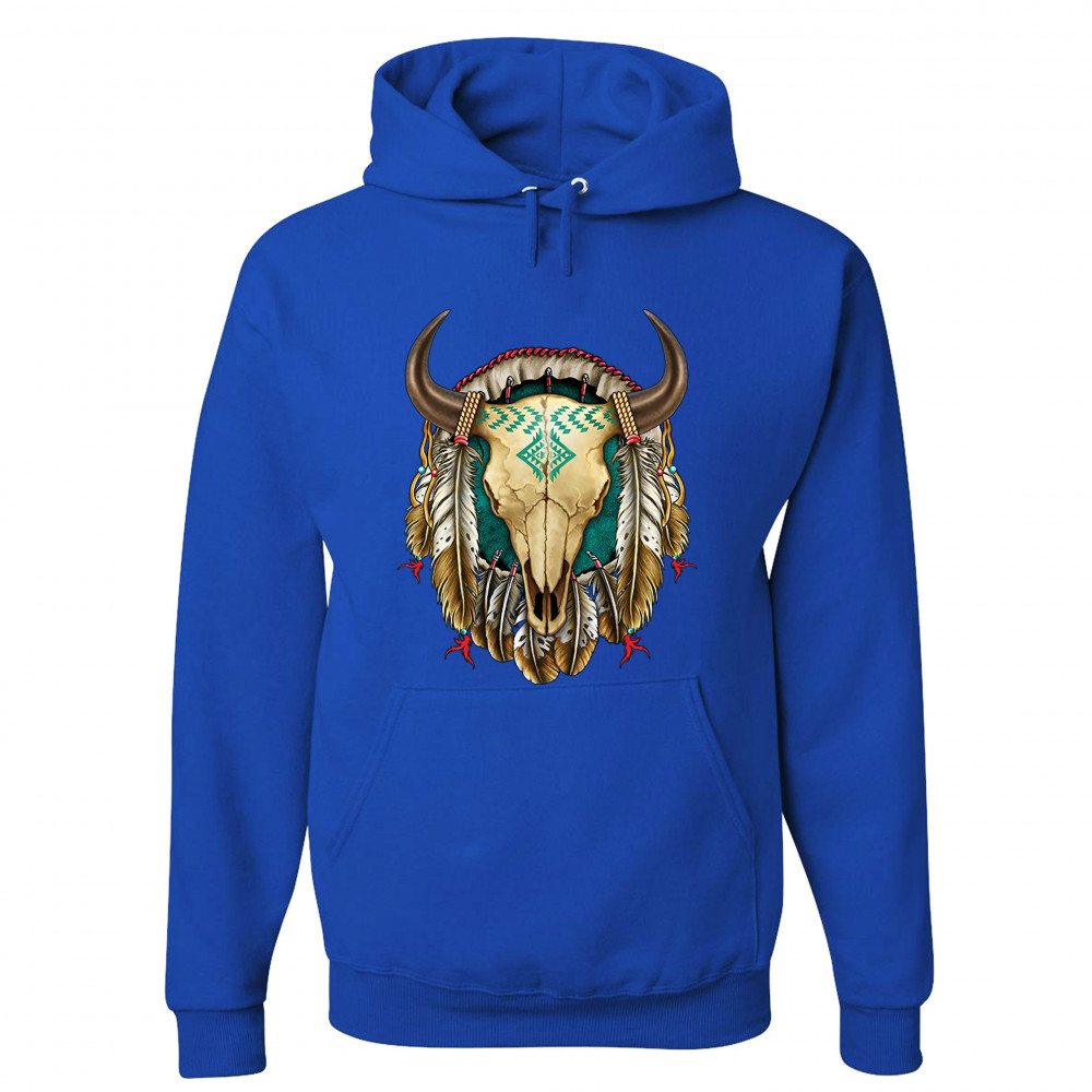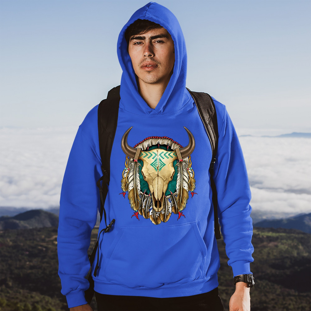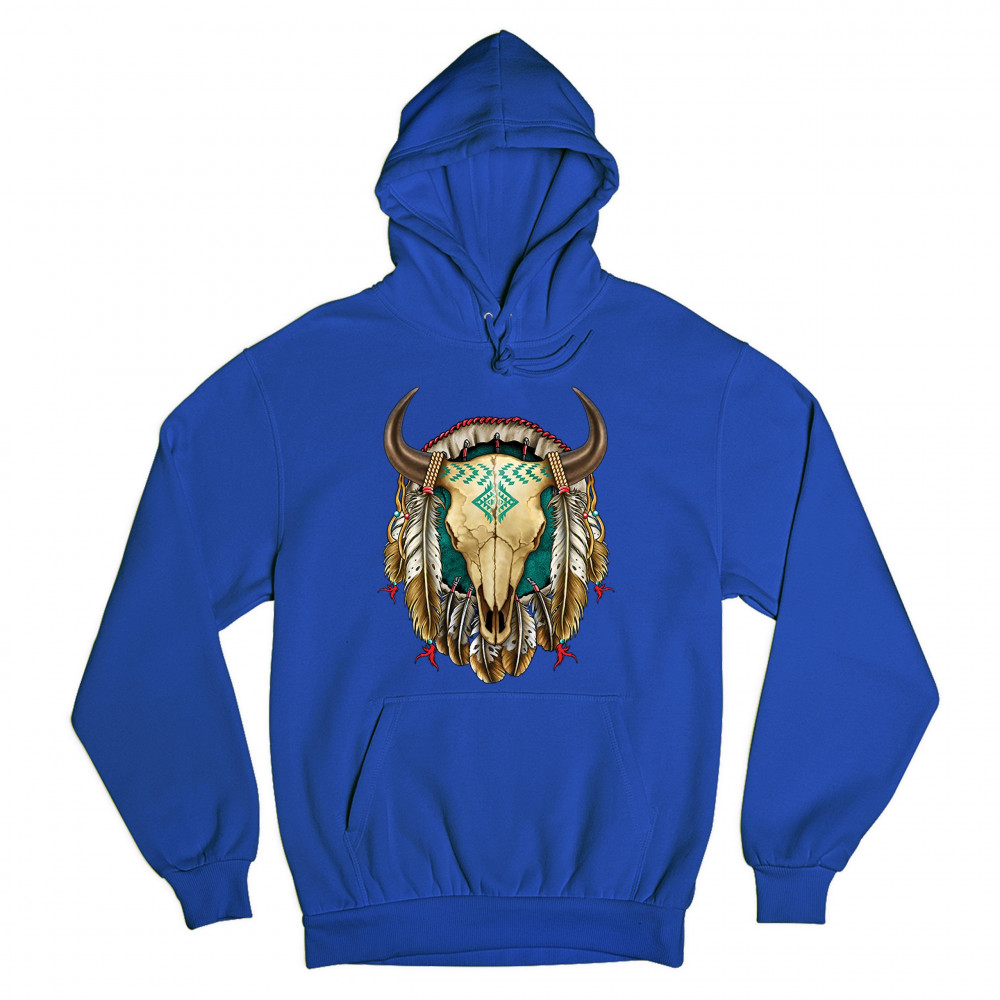 STEER SKULL DREAMCATCHER sweatshirt native american indigenous culture hoodie royal blue