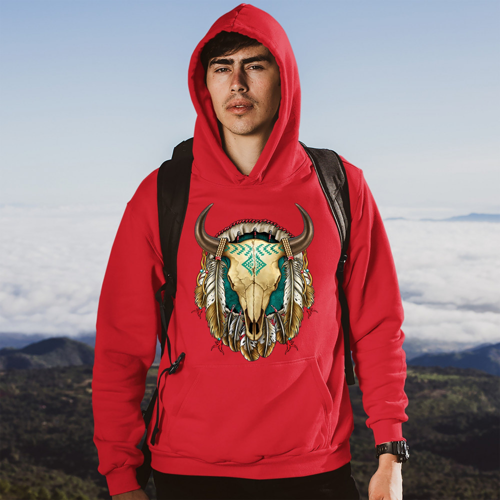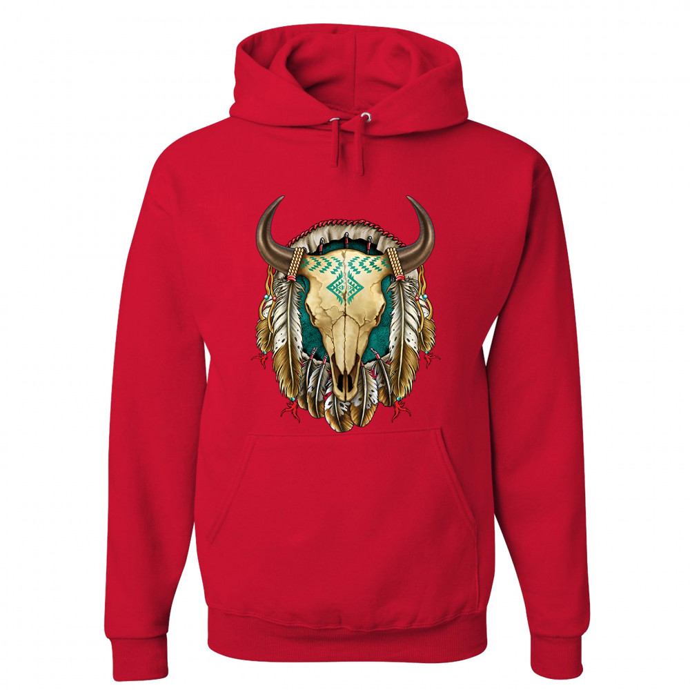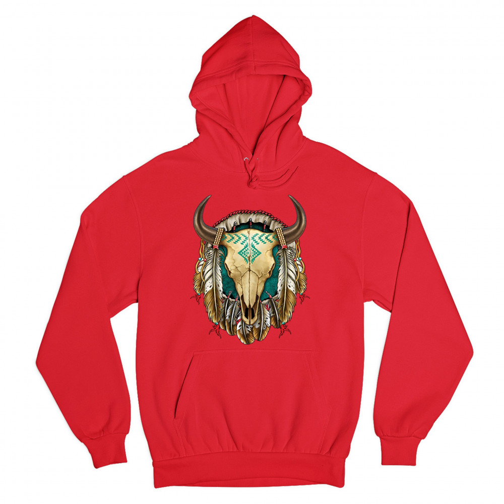 STEER SKULL DREAMCATCHER sweatshirt native american indigenous culture hoodie red