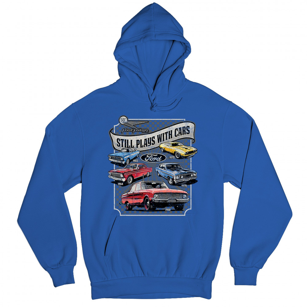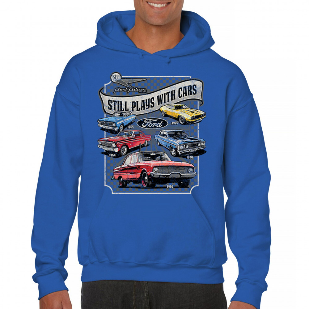 Still Plays With Cars pays tribute to the Ford Falcon, showcasing legendary models from the 60s and 70s for true vintage car lovers. Perfect for gearheads, hot rod fans, and classic car collectors, this design celebrates retro automobile culture, vintage horsepower, and old school rides. A great value piece for anyone devoted to the classic car scene.