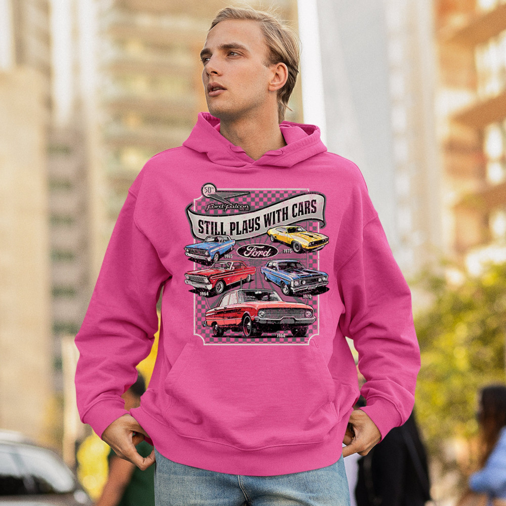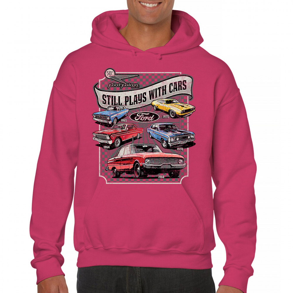 Still Plays With Cars pays tribute to the Ford Falcon, showcasing legendary models from the 60s and 70s for true vintage car lovers. Perfect for gearheads, hot rod fans, and classic car collectors, this design celebrates retro automobile culture, vintage horsepower, and old school rides. A great value piece for anyone devoted to the classic car scene.