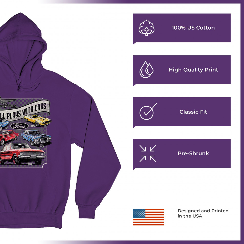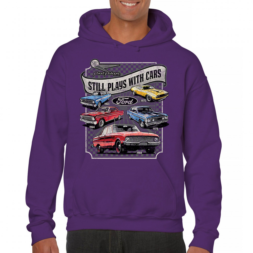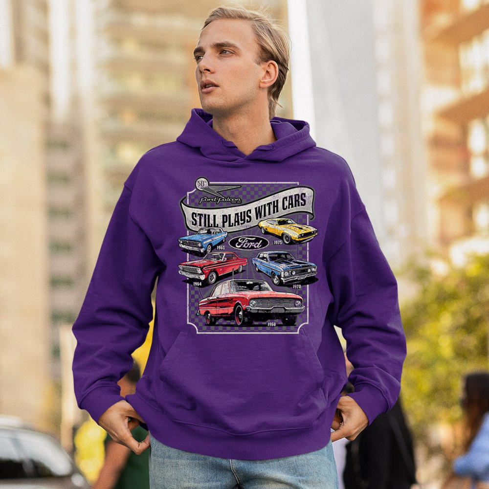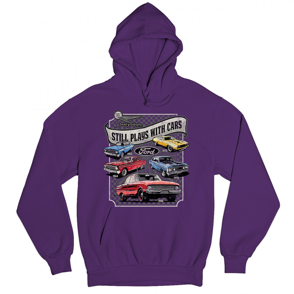 STILL PLAYS WITH CARS FORD FALCON unisex hoodie 60s classic muscle car purple