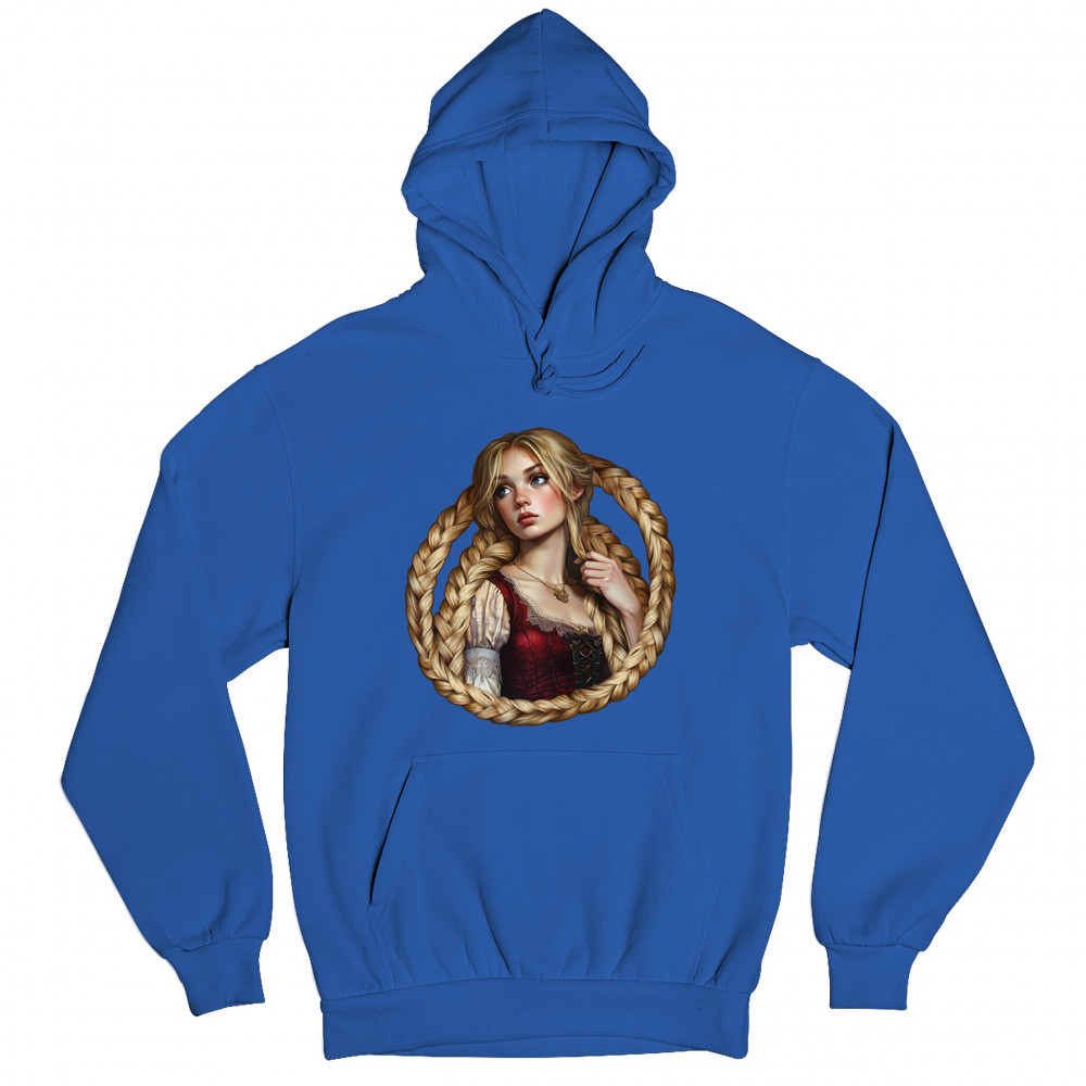 A dreamy design featuring a blonde girl with long braided hair encircling her like a frame. With vintage dress details and a wistful look, this artwork channels the essence of fairytales, romantic legends, and gentle feminine power. Ideal for fantasy lovers, folklore fans, and collectors of magical storybook themes.