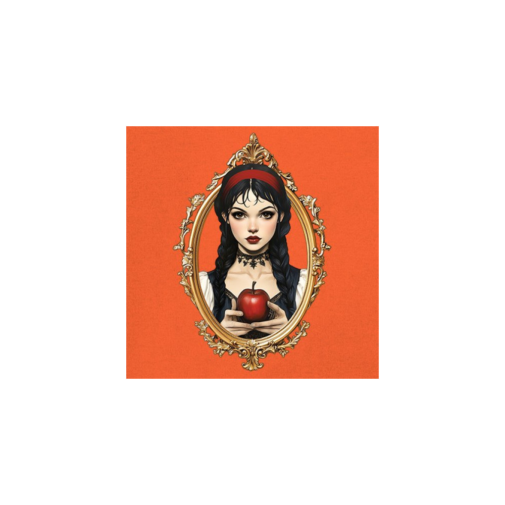 This enchanting design brings to life a gothic-inspired girl holding a red apple, encased in a regal vintage mirror frame. With elements pulled from Snow White, fairytales, and fantasy symbolism, it blends innocence and temptation with dark romanticism. Perfect for dreamers, collectors, and lovers of magical narratives and visual elegance.