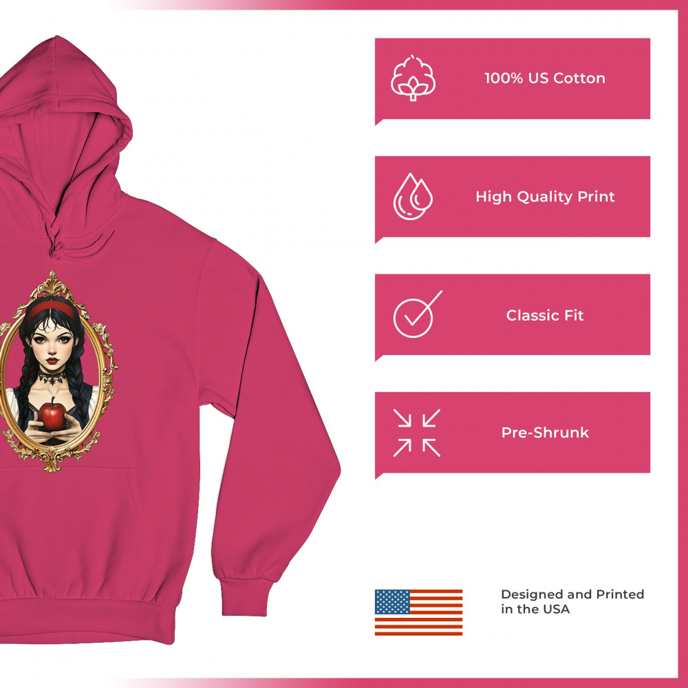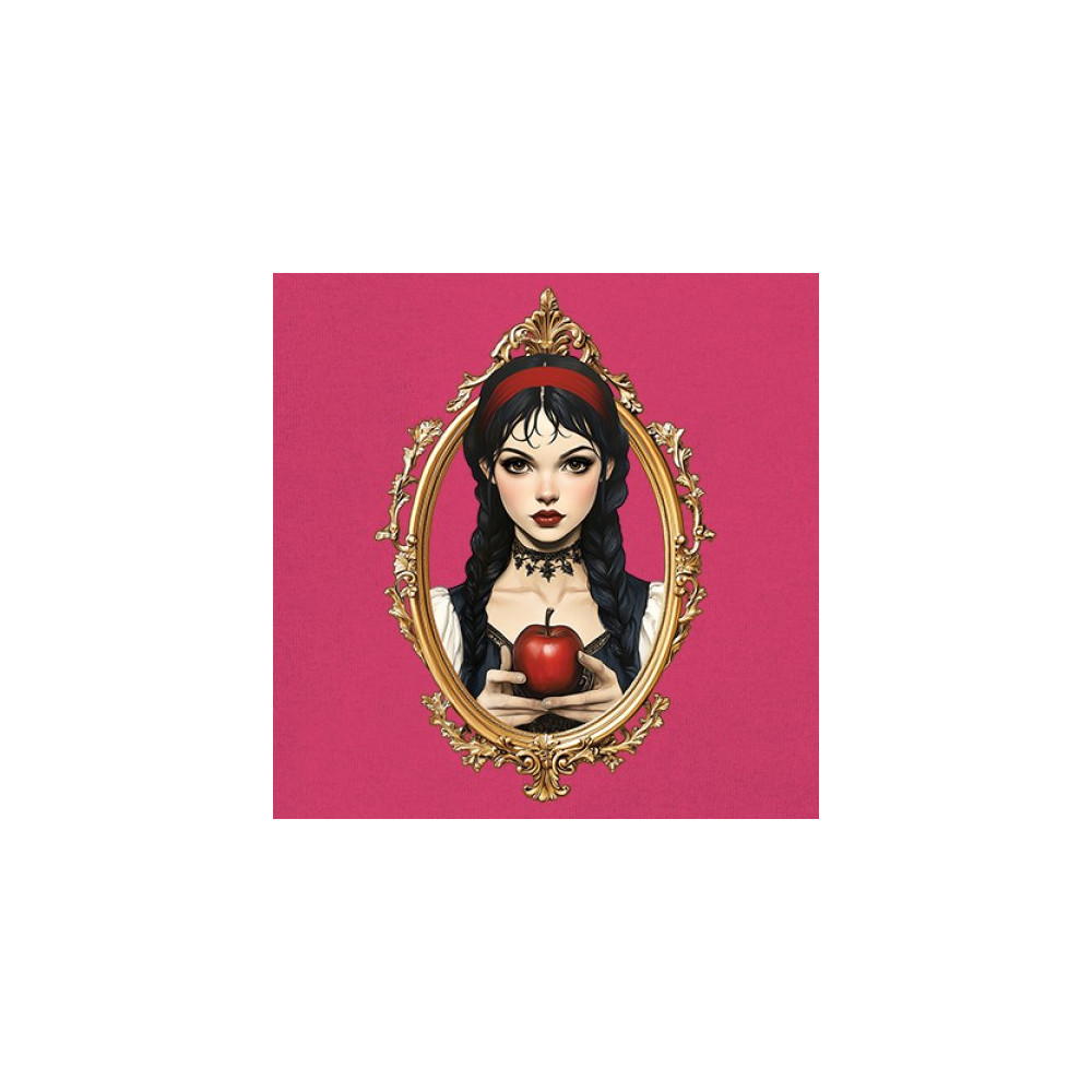 This enchanting design brings to life a gothic-inspired girl holding a red apple, encased in a regal vintage mirror frame. With elements pulled from Snow White, fairytales, and fantasy symbolism, it blends innocence and temptation with dark romanticism. Perfect for dreamers, collectors, and lovers of magical narratives and visual elegance.