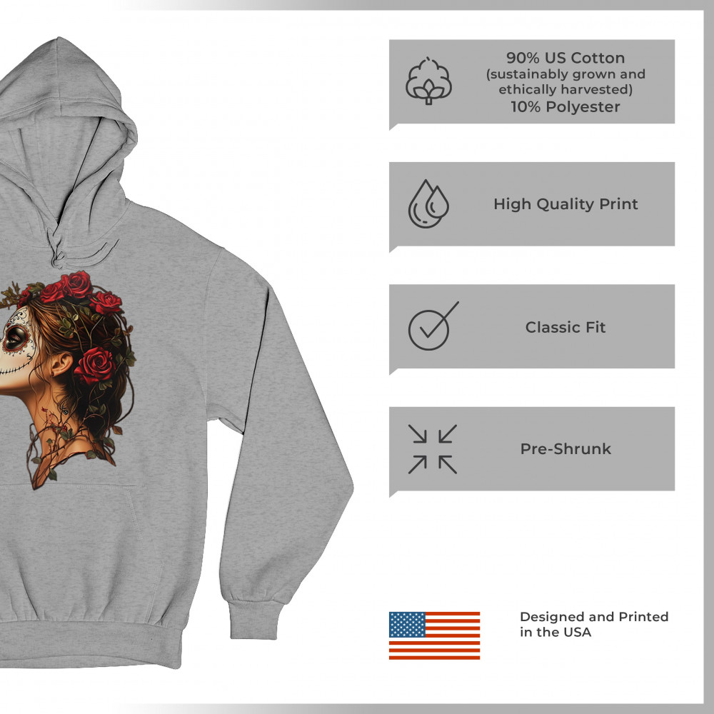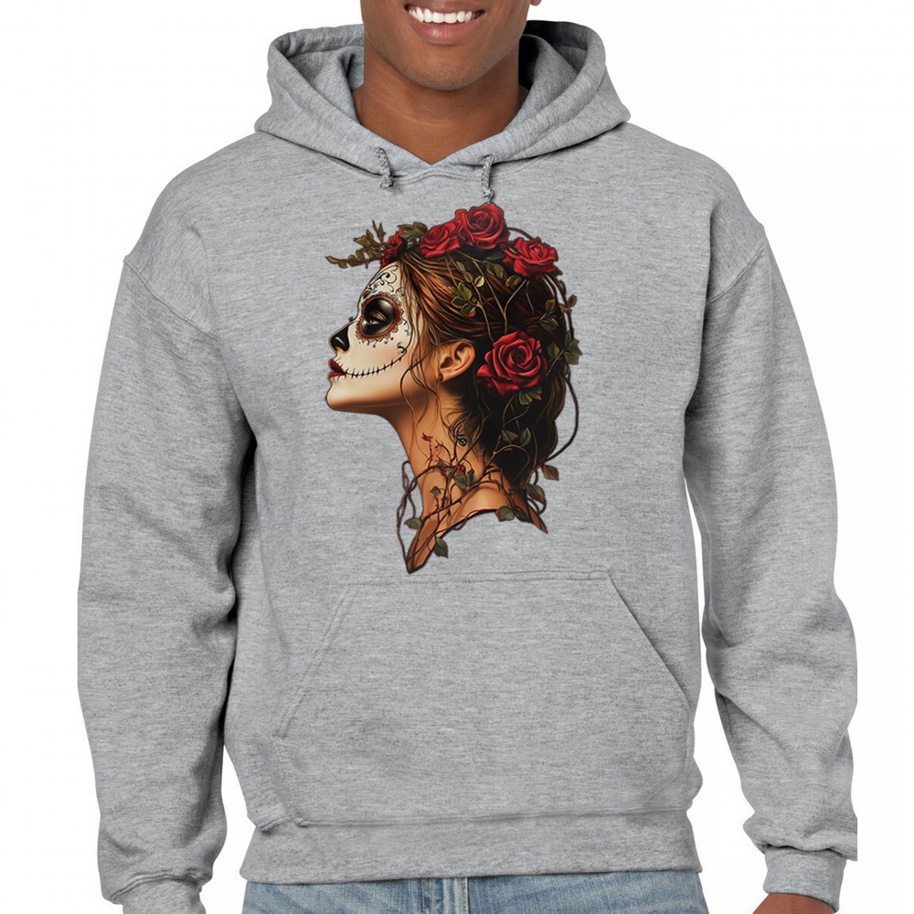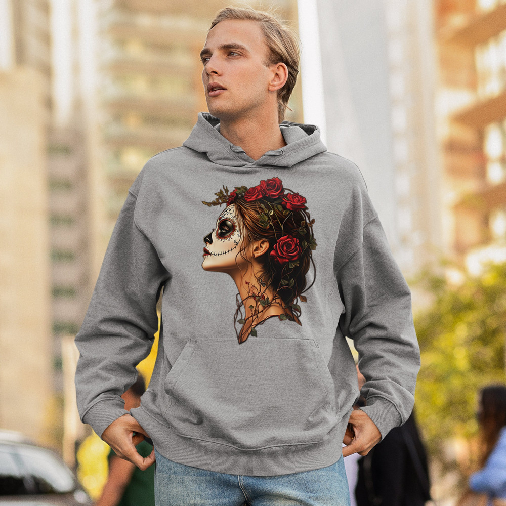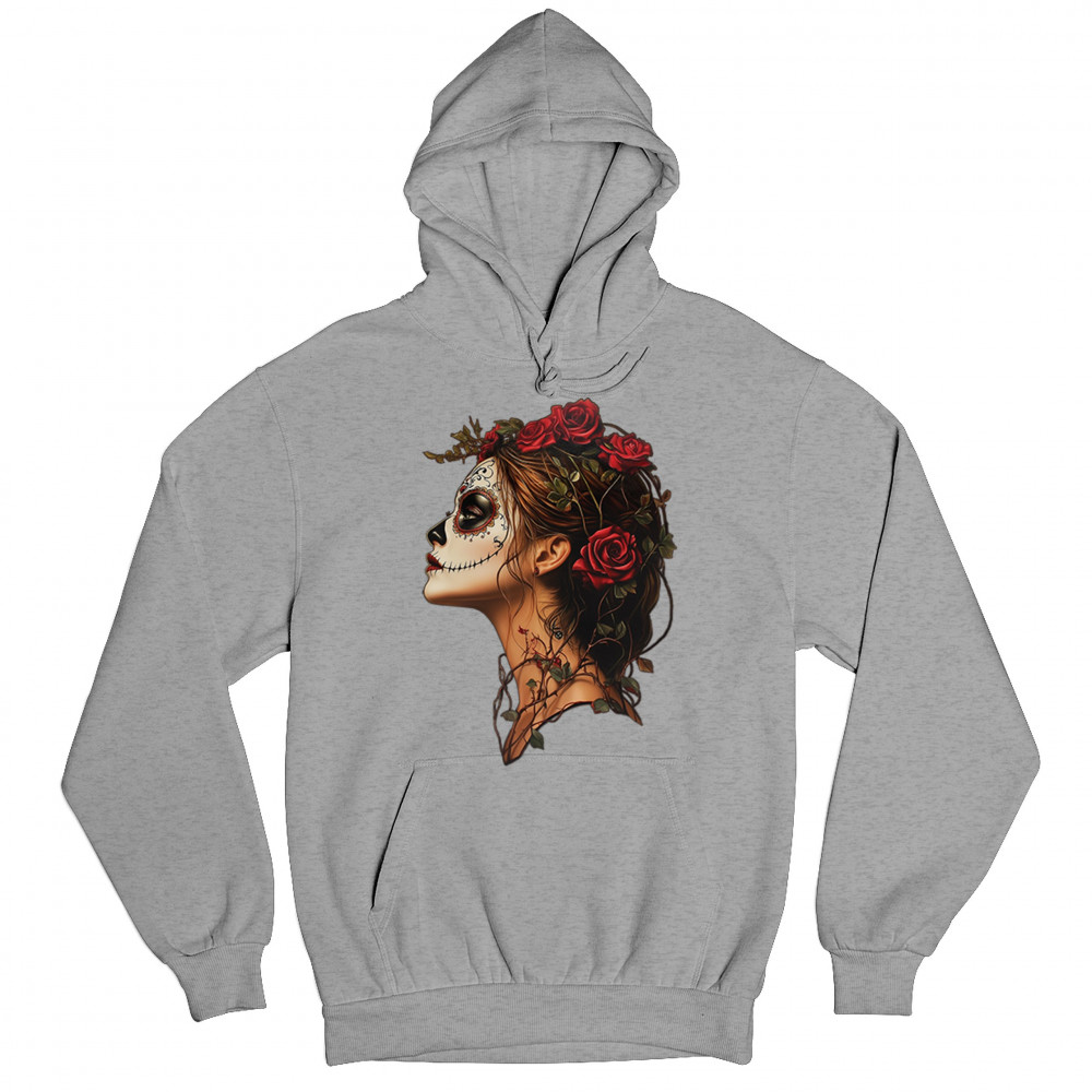 SUGAR SKULL PROFILE sweatshirt dia de los muertos skeleton face floral hoodie gray