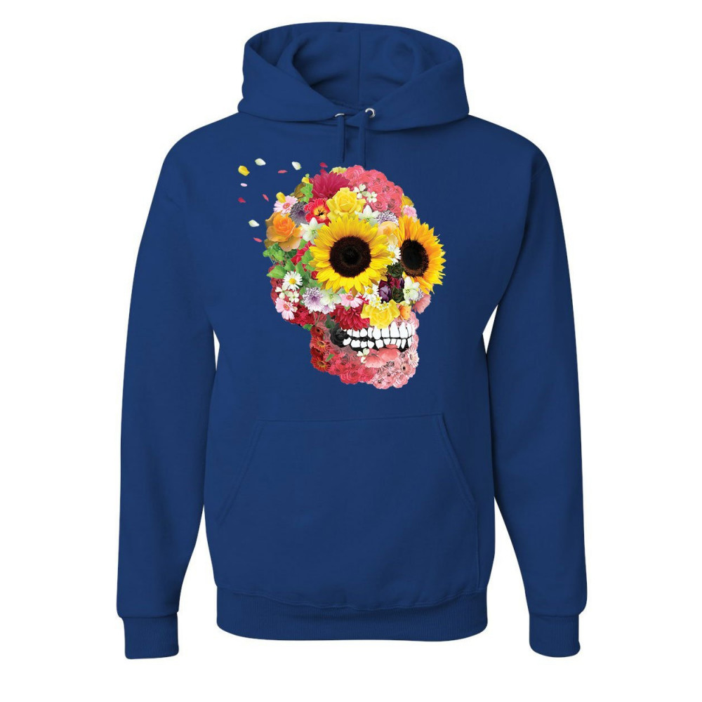 SUNFLOWERS SUGAR SKULL hoodie day of the dead calavera mexico sweatshirt royal blue