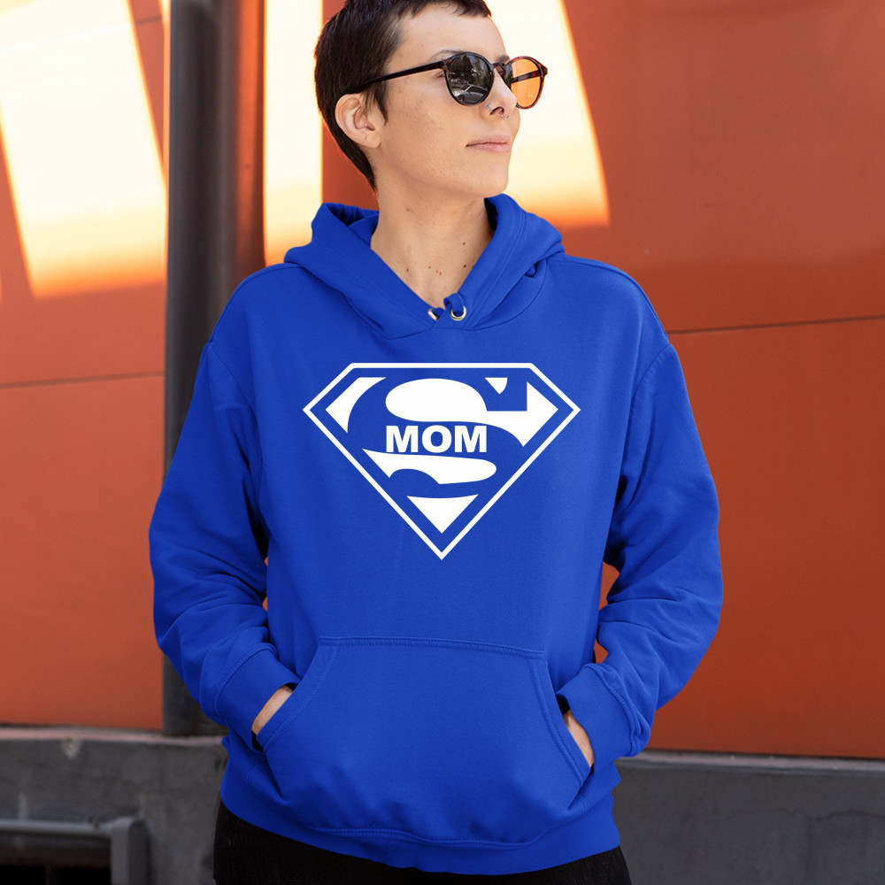 SUPER MOM FUNNY sweatshirt superhero parody mother's day hoodie royal blue