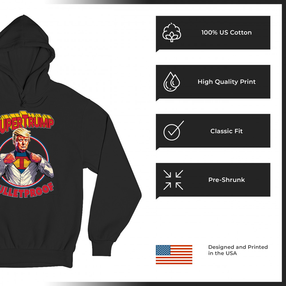 SUPER TRUMP BULLETPROOF 2024 sweatshirt maga make america great again hoodie black