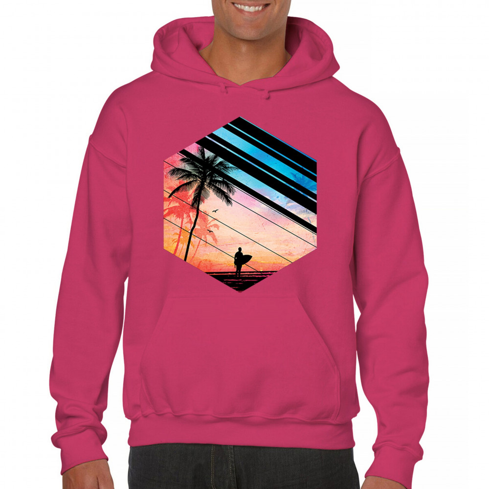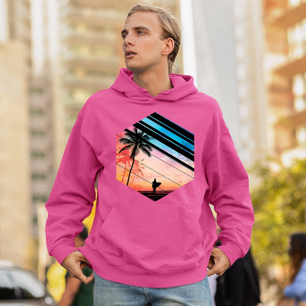 Catch the vibe of endless summer with our surf-inspired tee. Featuring silhouetted palms, warm gradients, and cool geometric shapes, it’s a visual journey from the urban grind to tropical tranquility. This tee is for the soul surfers and dreamers, made to be as enduring as the memories of your last wave. It's more than apparel—it’s a horizon of possibilities. Add this staple to your collection and let the good times roll.