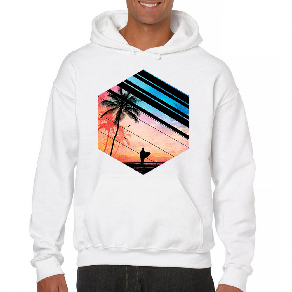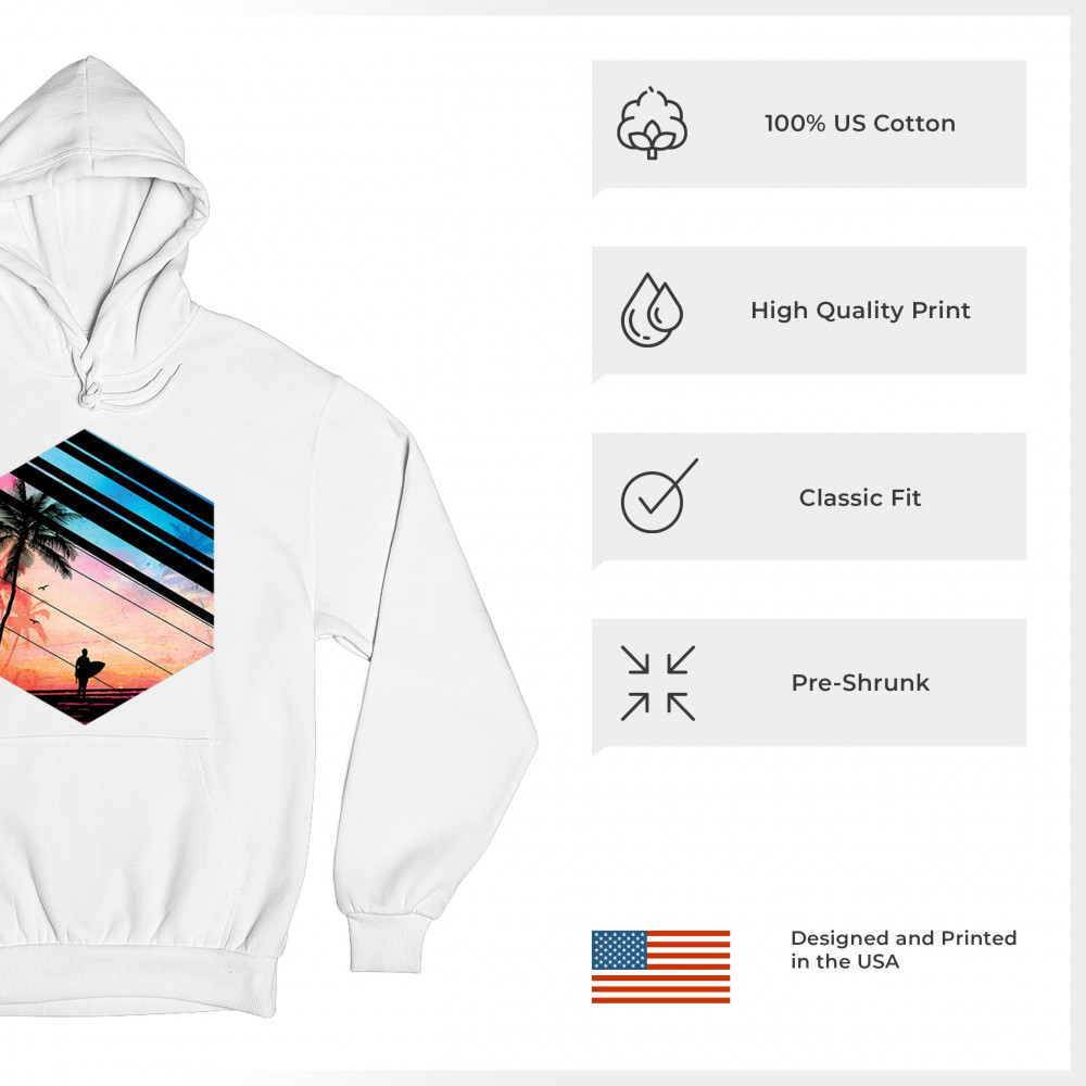 Catch the vibe of endless summer with our surf-inspired tee. Featuring silhouetted palms, warm gradients, and cool geometric shapes, it’s a visual journey from the urban grind to tropical tranquility. This tee is for the soul surfers and dreamers, made to be as enduring as the memories of your last wave. It's more than apparel—it’s a horizon of possibilities. Add this staple to your collection and let the good times roll.