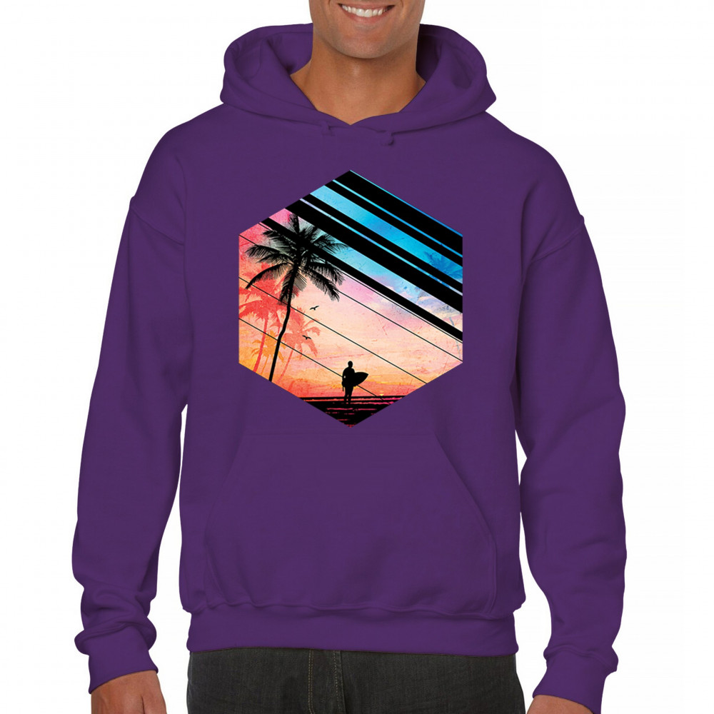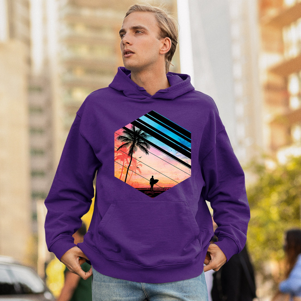 Catch the vibe of endless summer with our surf-inspired tee. Featuring silhouetted palms, warm gradients, and cool geometric shapes, it’s a visual journey from the urban grind to tropical tranquility. This tee is for the soul surfers and dreamers, made to be as enduring as the memories of your last wave. It's more than apparel—it’s a horizon of possibilities. Add this staple to your collection and let the good times roll.