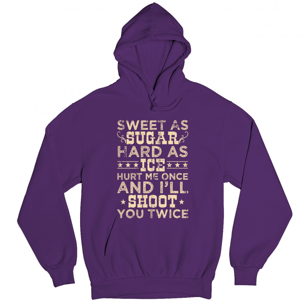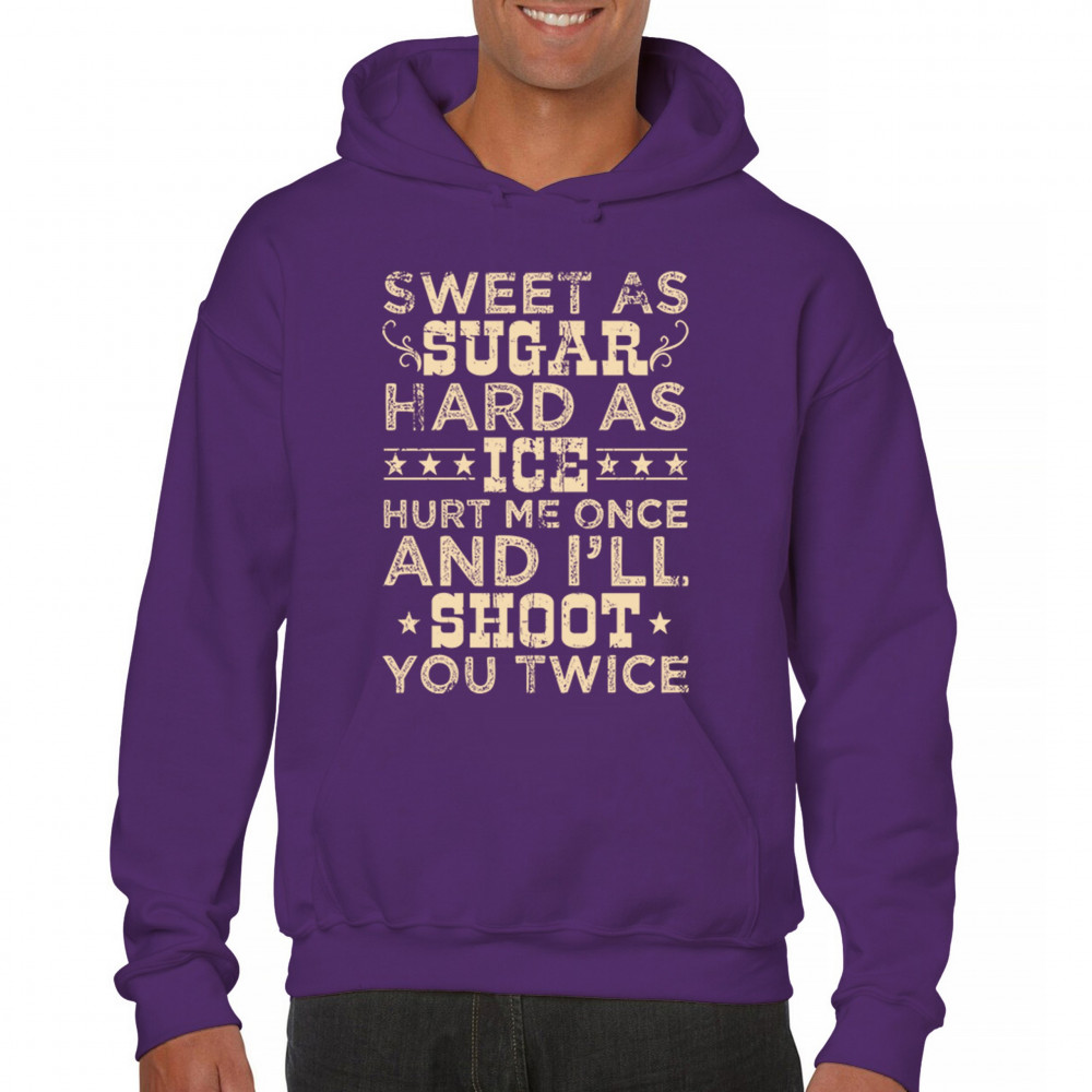 Declare your stance with this bold pro-gun design featuring the quote "Sweet as Sugar, Hard as Ice, Hurt Me Once, I’ll Shoot You Twice." Made for patriots, firearm enthusiasts, military supporters, and defenders of the Constitution. The design blends American pride, 2nd Amendment power, and personal grit in one fierce statement of freedom and justice.