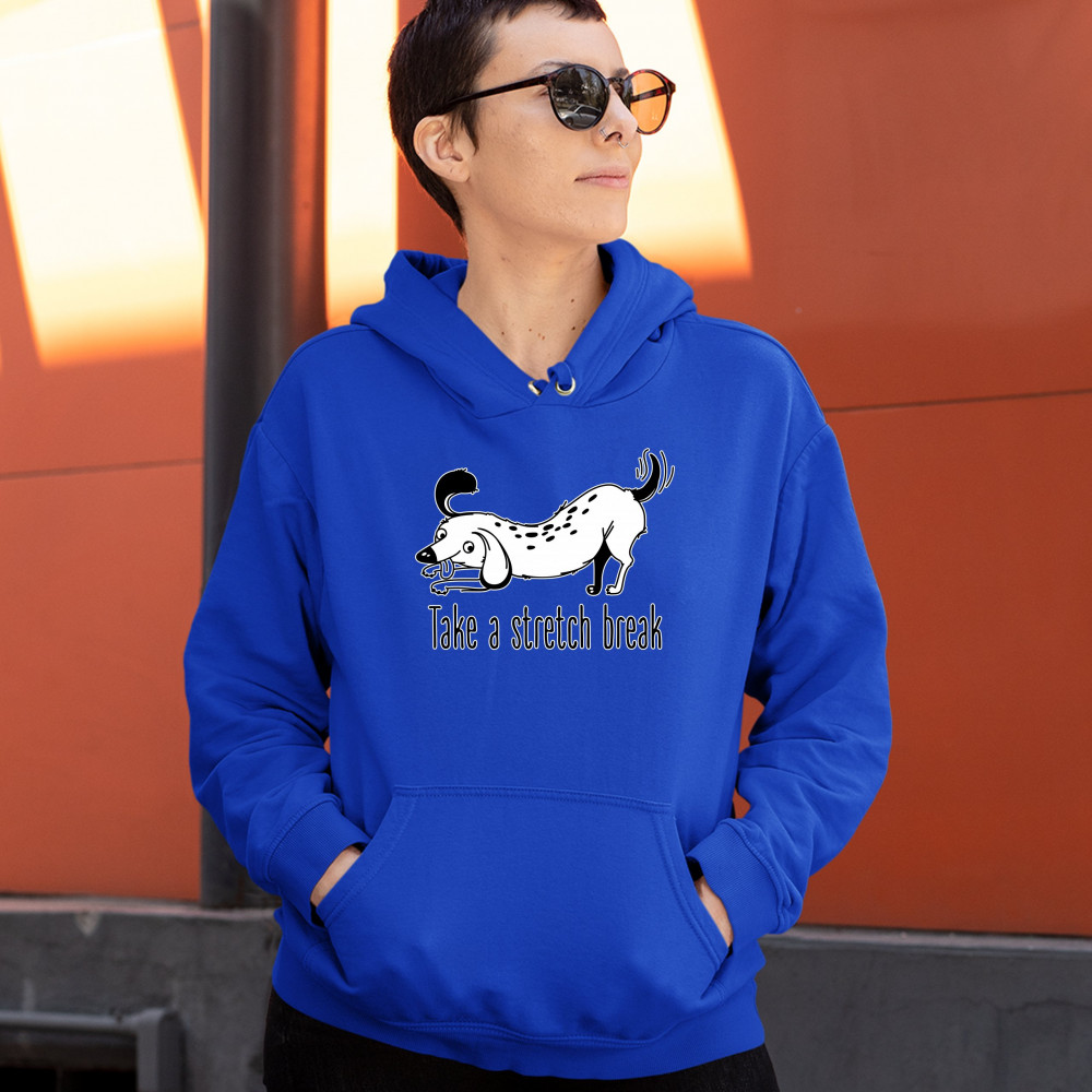 TAKE A STRETCH BREAK sweatshirt funny dachshund dog lover pet owner hoodie royal blue