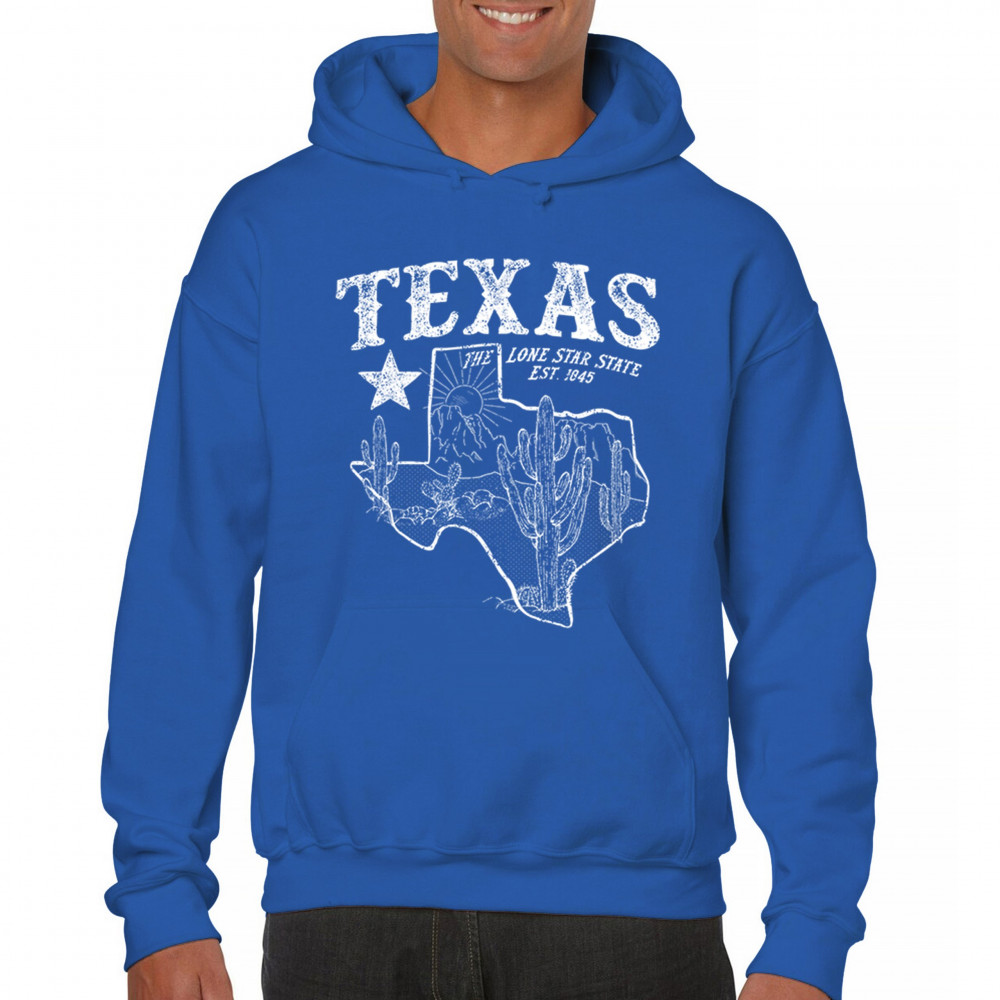 Celebrate the Lone Star State with this rugged Texas map design featuring cactus, mountains, and bold state pride text. A rustic southwestern tribute to the state’s heritage, established in 1845, it’s the perfect look for rodeos, country festivals, and lovers of the Texas desert lifestyle and scenery.