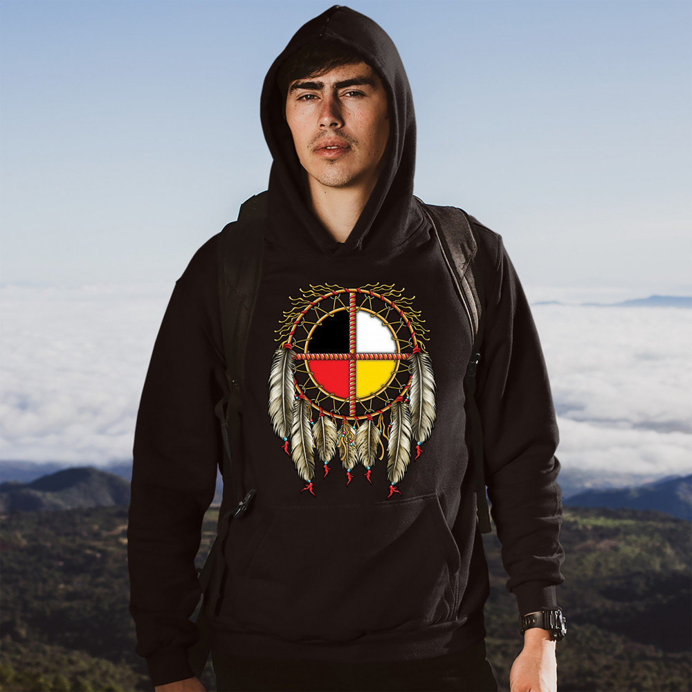 THE MEDICINE WHEEL DREAMCATCHER sweatshirt native american symbol hoodie black