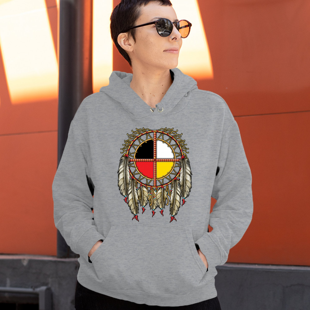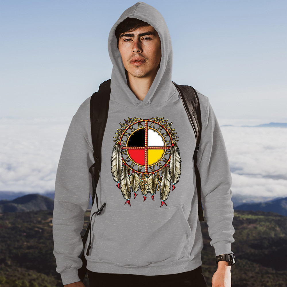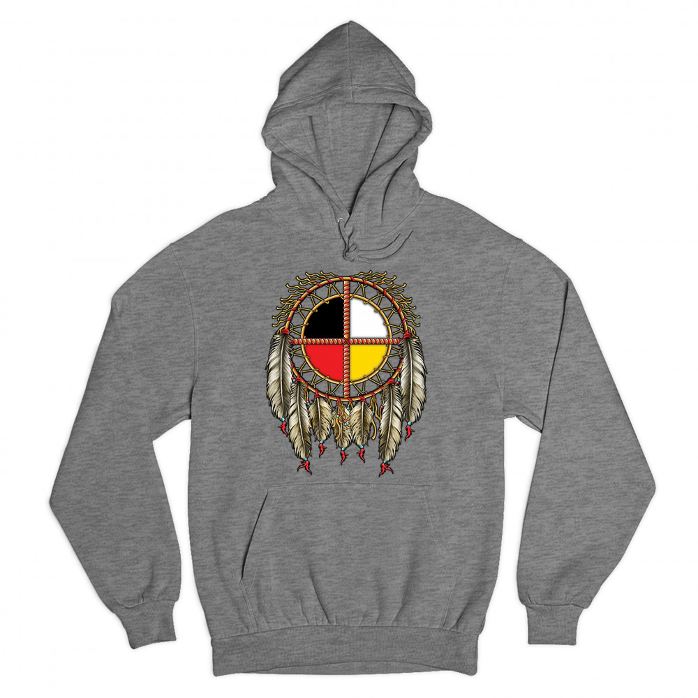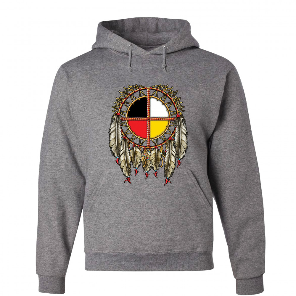 THE MEDICINE WHEEL DREAMCATCHER sweatshirt native american symbol hoodie gray