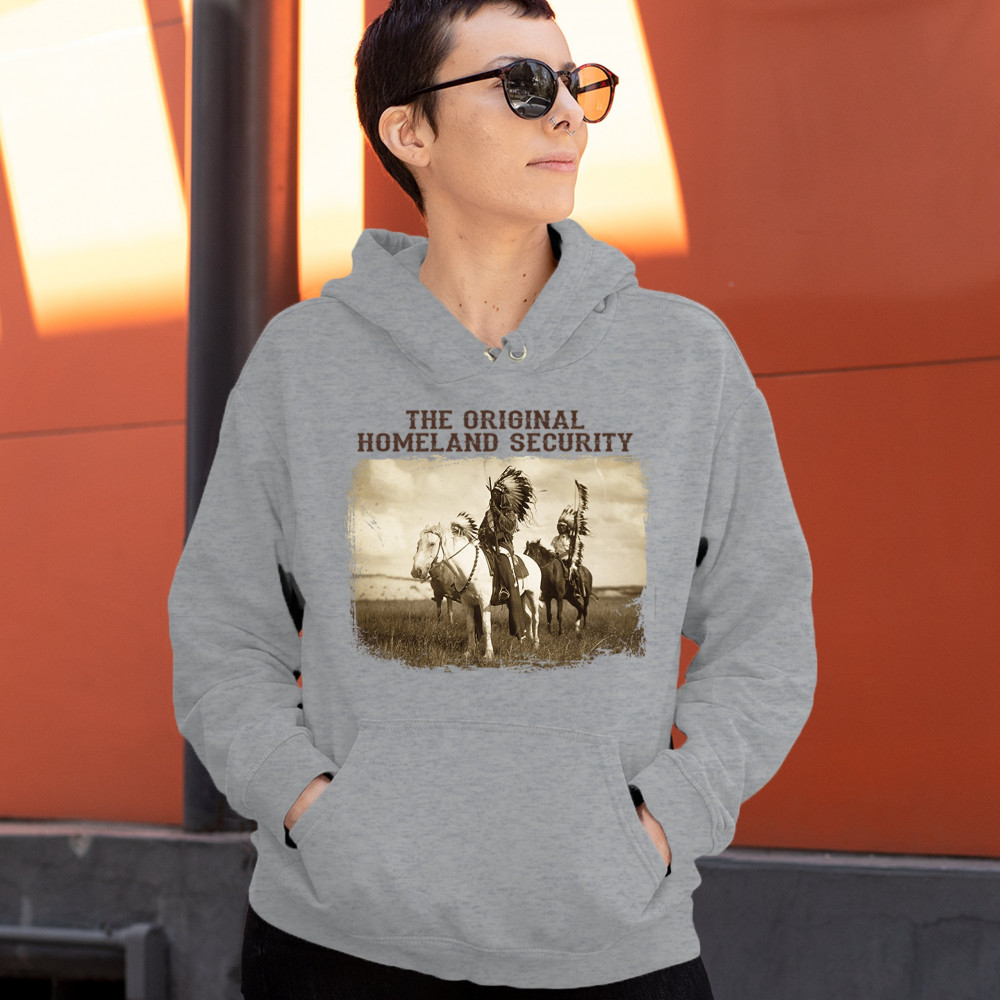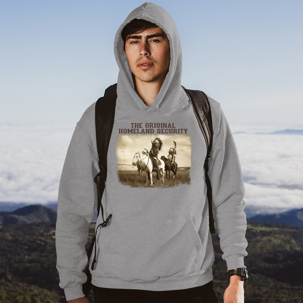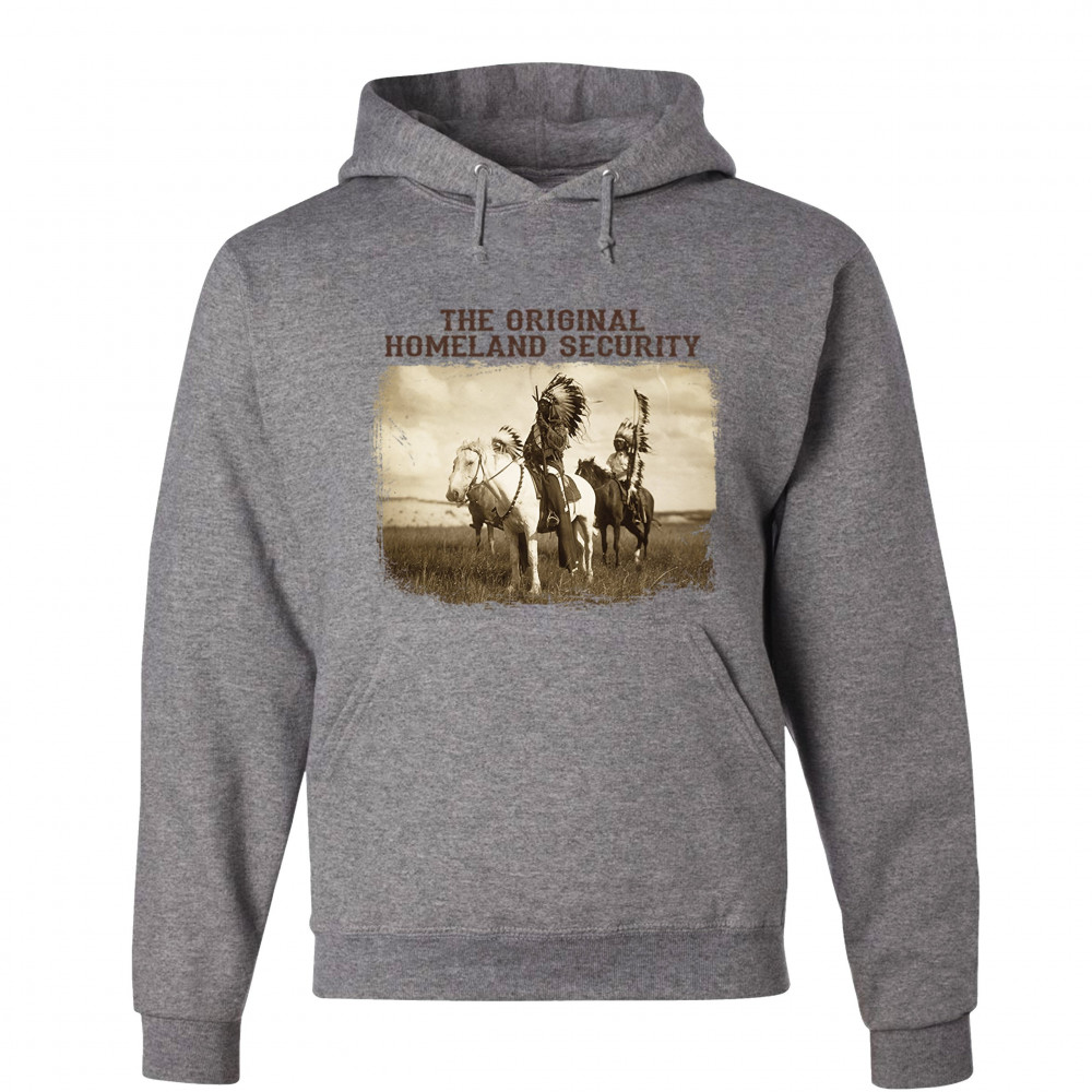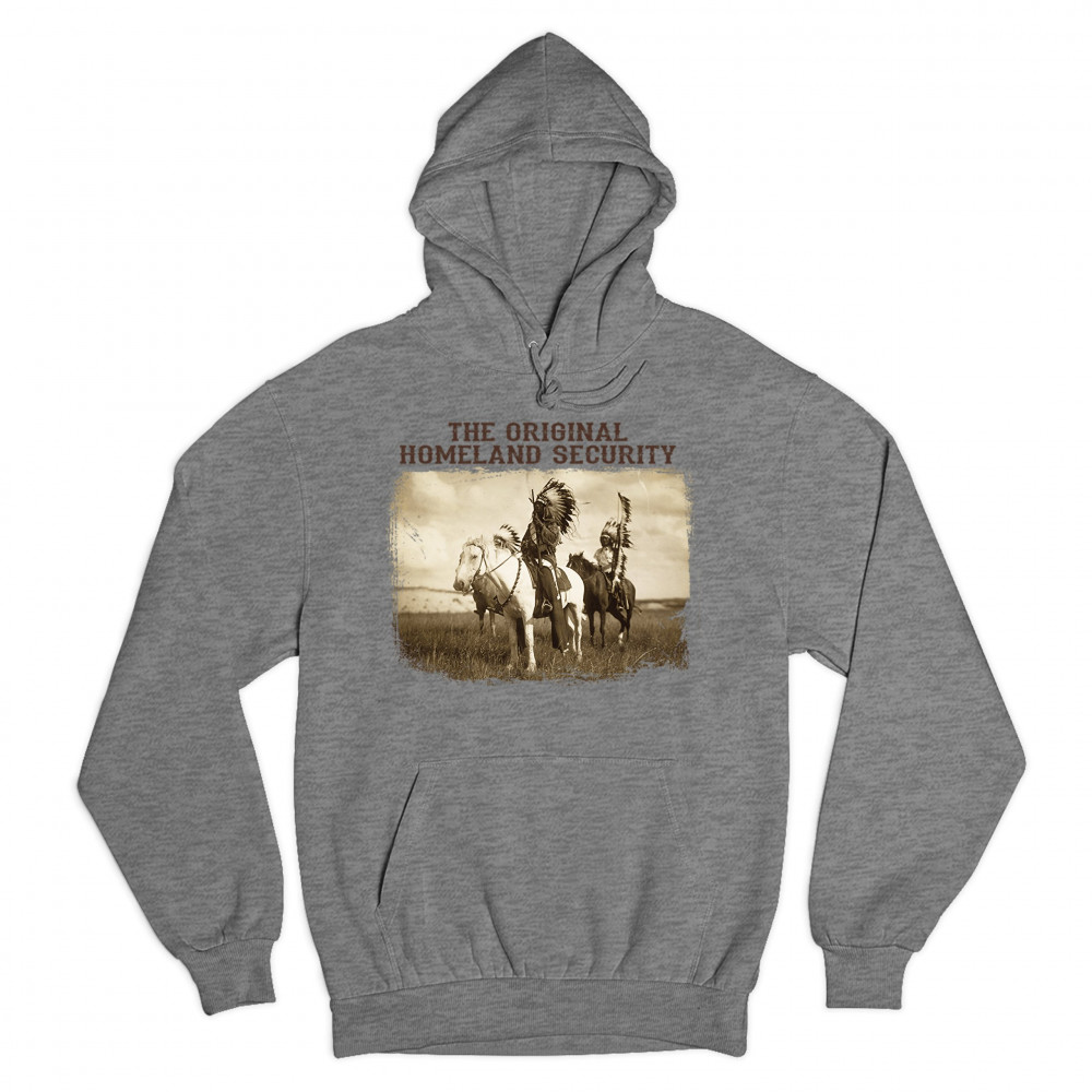 THE ORIGINAL HOMELAND SECURITY sweatshirt indigenous tribal chiefs hoodie gray
