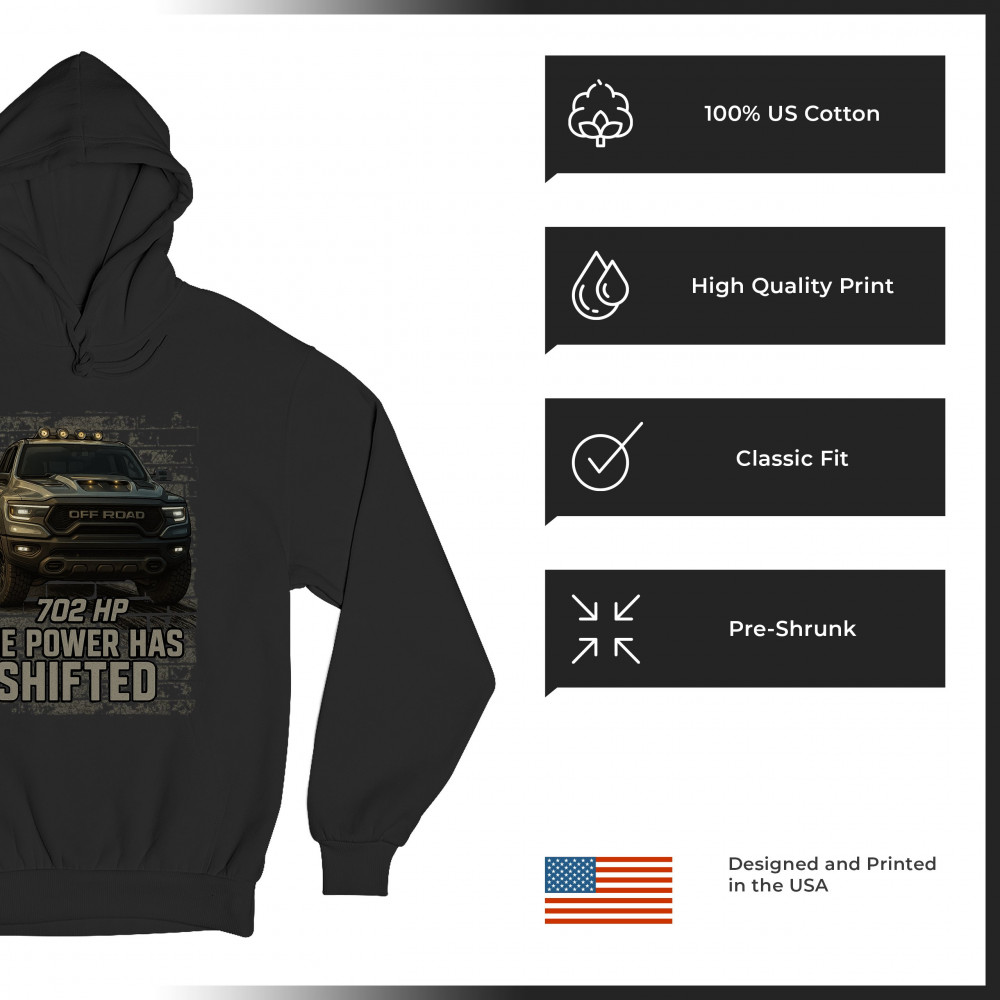 THE POWER HAS SHIFTED sweatshirt 702hp pickup truck offroad muscle 4x4 hoodie black