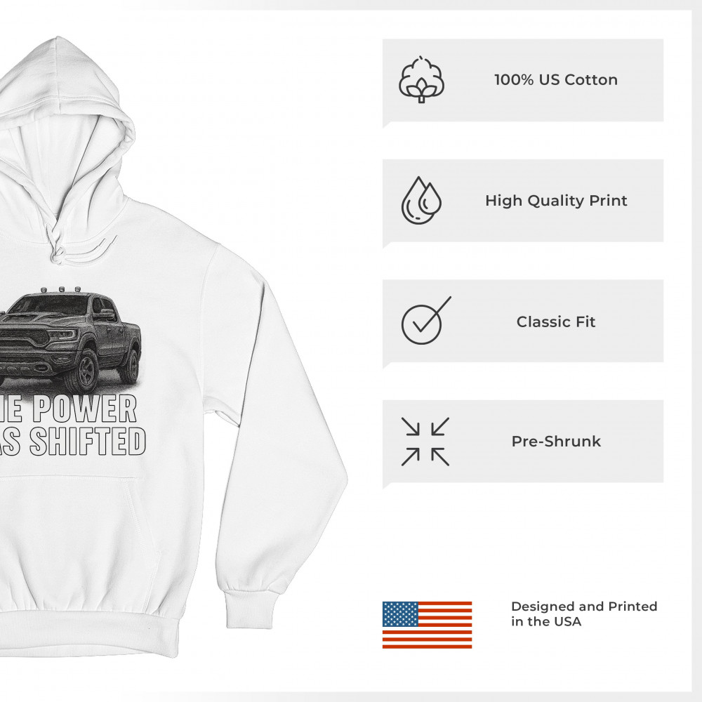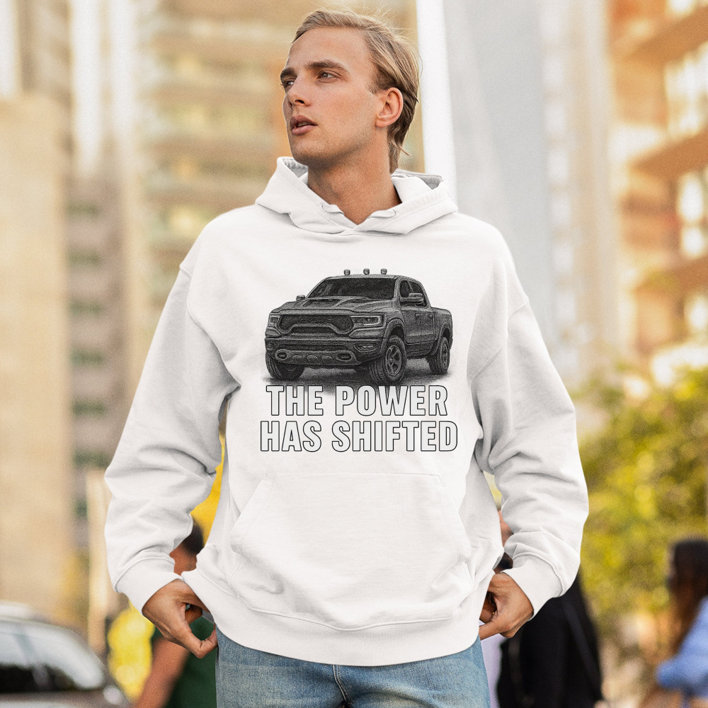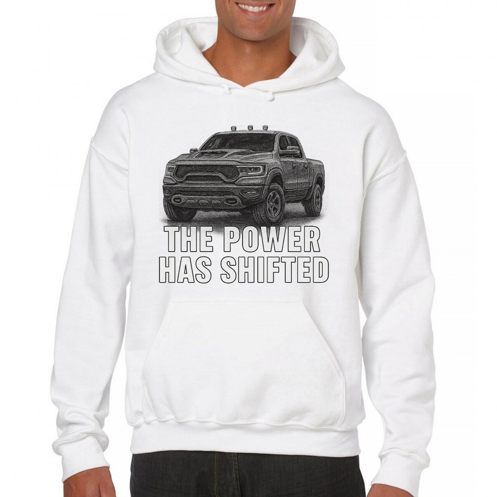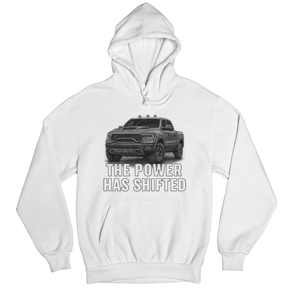 THE POWER HAS SHIFTED unisex hoodie american 4x4 offroad pickup truck white