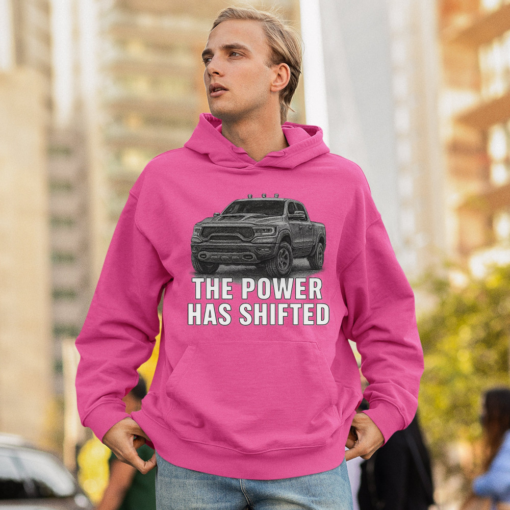 THE POWER HAS SHIFTED unisex hoodie american 4x4 offroad pickup truck pink