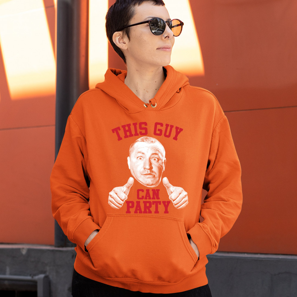 THIS GUY CAN PARTY sweatshirt curly howard the three stooges hoodie orange