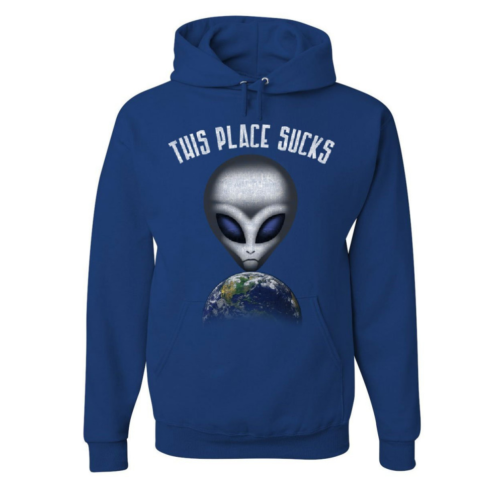 THIS PLACE SUCKS hoodie funny ufo alien space universe earth sweatshirt royal blue