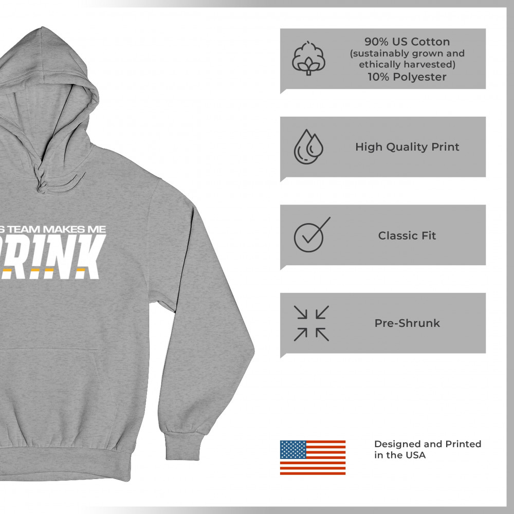Celebrate Pittsburgh football fandom with this funny “This Team Makes Me Drink†design, built for Die Hard Football Fans and Game Night gatherings. Perfect for tailgate parties, Fantasy League rivalries, and weekend watch parties, it highlights Rust Belt football, gridiron tradition, black and gold pride, playoff energy, and Pittsburgh’s underdog grit.