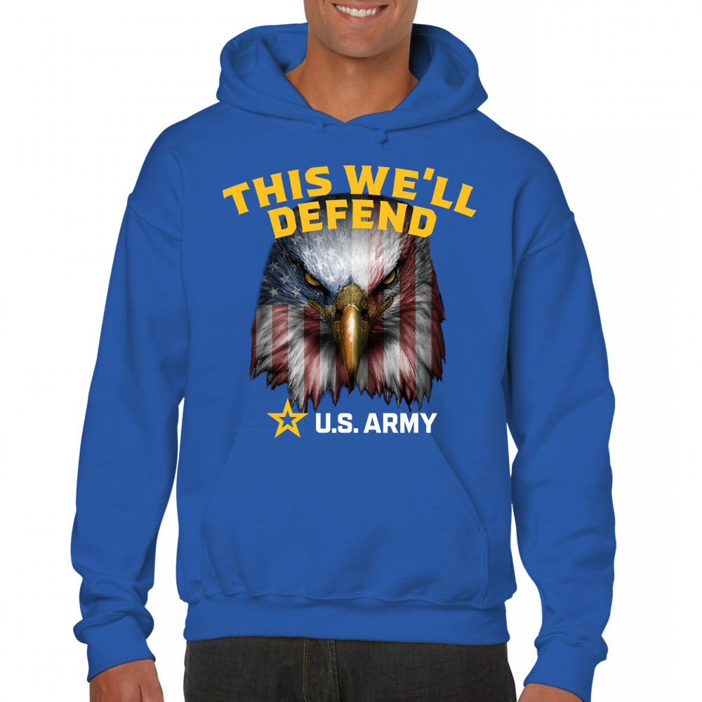 This bold design captures the essence of U.S. Army pride, blending a fierce eagle with the stars and stripes, it symbolizes the strength and honor of our military. Perfect for veterans, active service members, and patriots, it showcases the bravery and valor of American soldiers. Display your support for the armed forces with gear that's combat-ready and steeped in history. A testament to the warrior spirit, this is for those who live a life of duty and resilience.