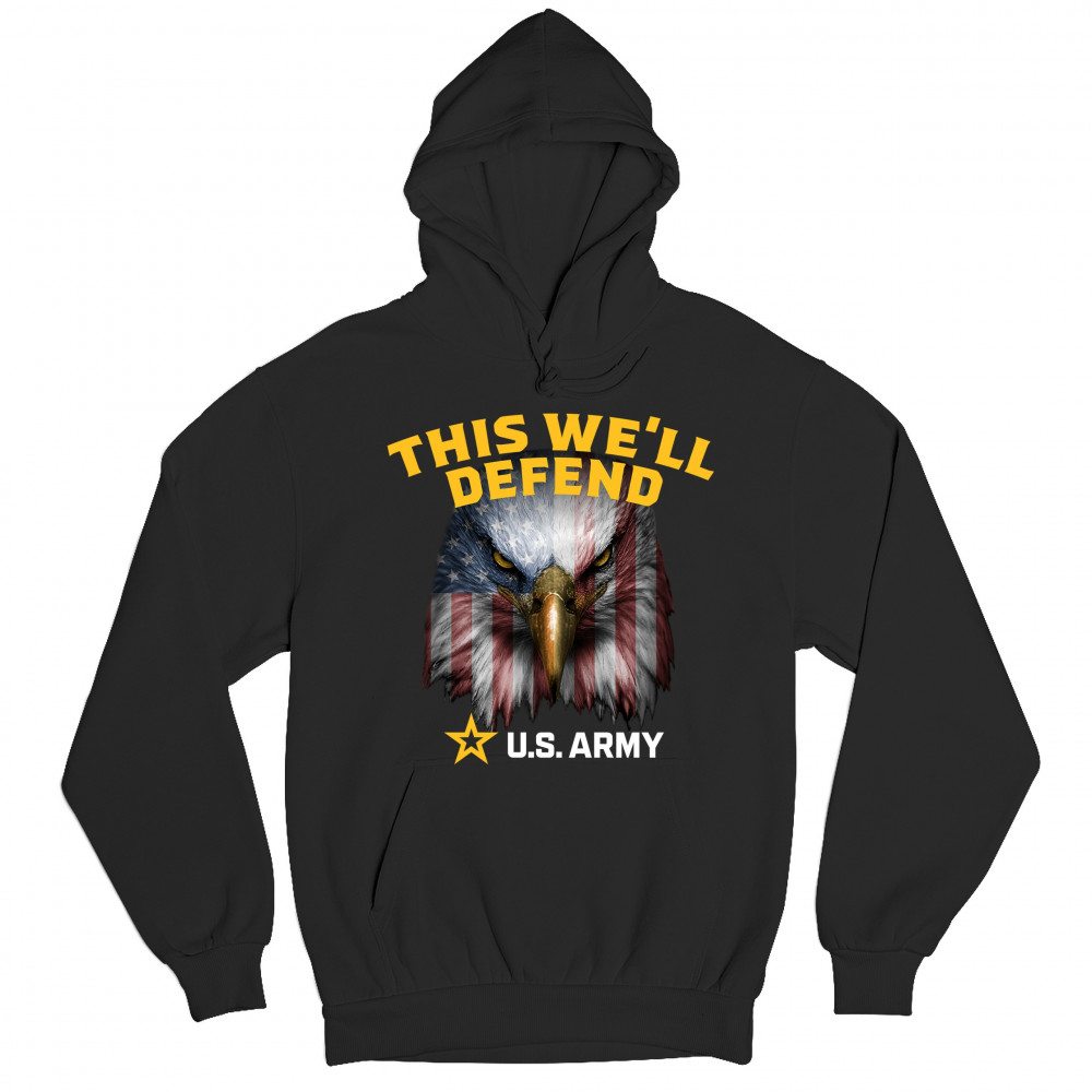 This bold design captures the essence of U.S. Army pride, blending a fierce eagle with the stars and stripes, it symbolizes the strength and honor of our military. Perfect for veterans, active service members, and patriots, it showcases the bravery and valor of American soldiers. Display your support for the armed forces with gear that's combat-ready and steeped in history. A testament to the warrior spirit, this is for those who live a life of duty and resilience.