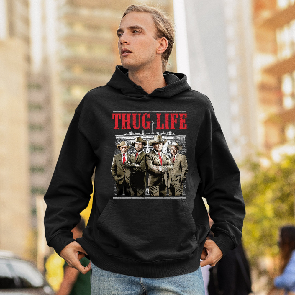 Make a statement with the Thug Life T-shirt, a must-have for every Republican and Trump supporter who stands for America First. Designed for those who believe in We The People Have Spoken, this shirt is perfect for rallies, events, or everyday wear. Featuring bold imagery and high-quality materials, it's a tribute to conservative values, the Red Wave, and the party of common sense. Get yours today and show your patriotic spirit.