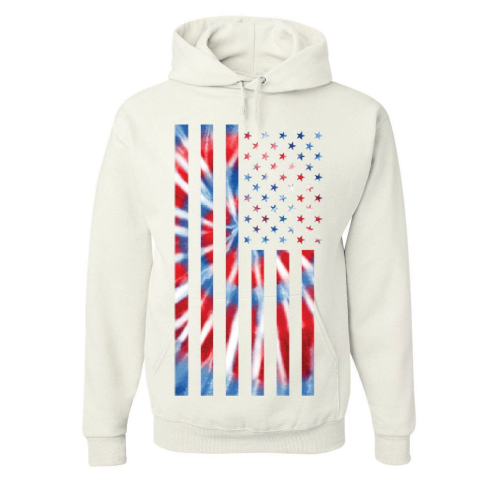 TIE-DYE AMERICAN FLAG hoodie 4th of july stars and stripes sweatshirt white
