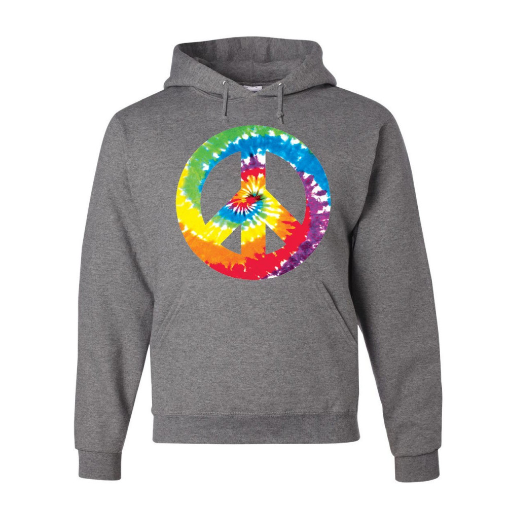 TIE DYE PEACE SYMBOL 80'S hoodie hippie happiness love not war sweatshirt gray