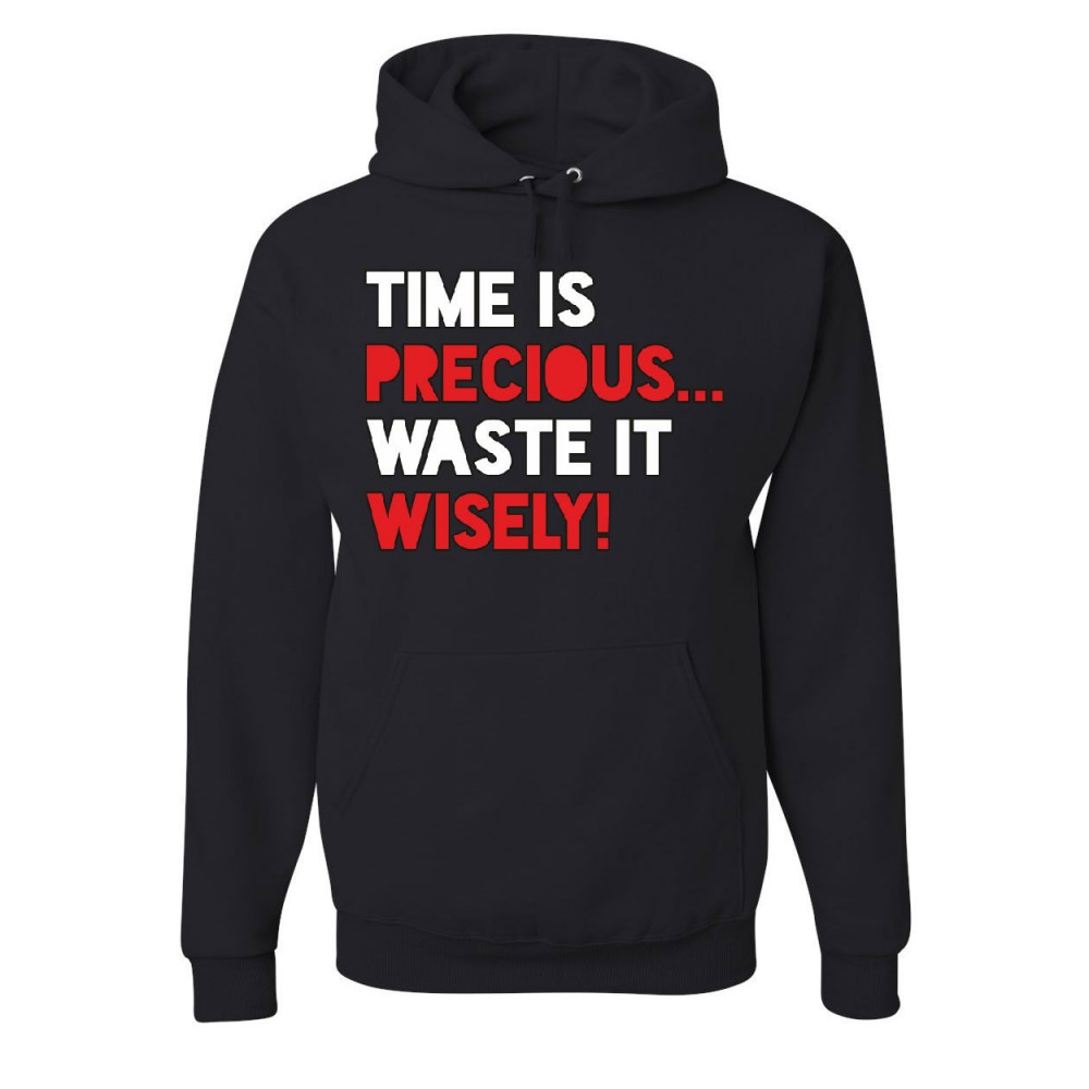 TIME IS PRECIOUS WASTE IT WISELY! time is precious waste it wisely hoodie college humor lazy fun sweatshirt black