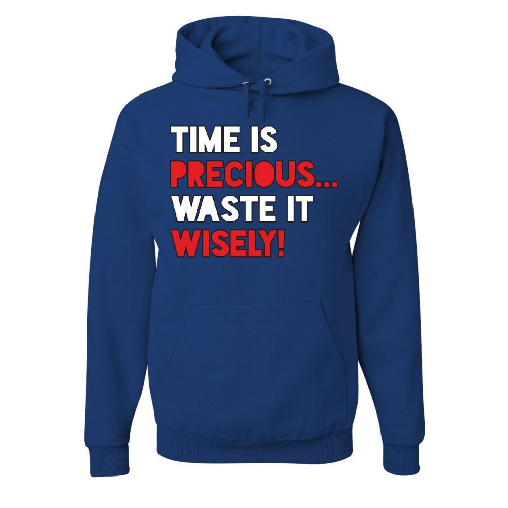 TIME IS PRECIOUS WASTE IT WISELY! time is precious waste it wisely hoodie college humor lazy fun sweatshirt royal blue