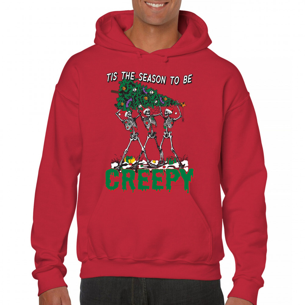 Spooky meets festive with "Tis the Season to Be Creepy" skeleton Christmas design. Perfect for holiday parties, Secret Santa, and unique gifts.