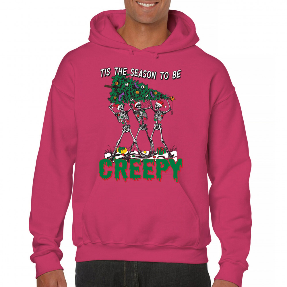 Spooky meets festive with "Tis the Season to Be Creepy" skeleton Christmas design. Perfect for holiday parties, Secret Santa, and unique gifts.