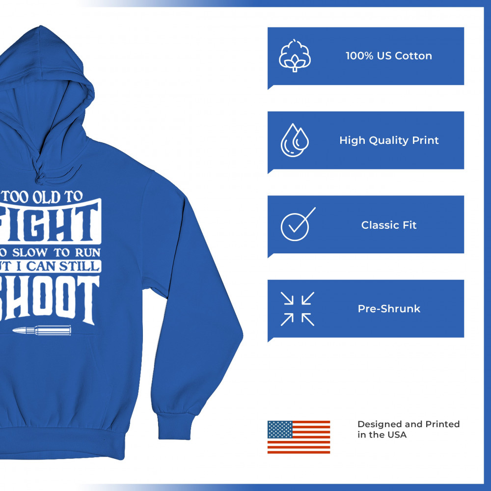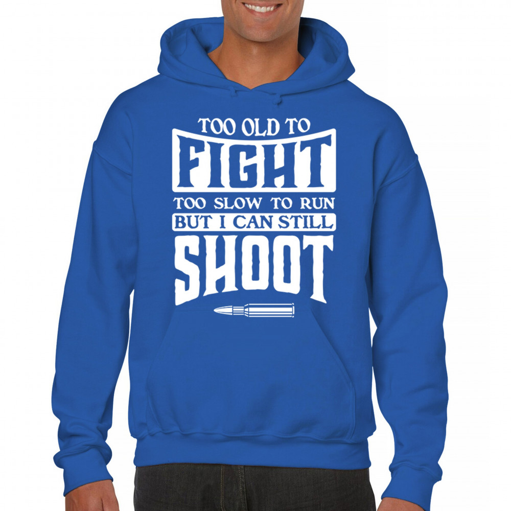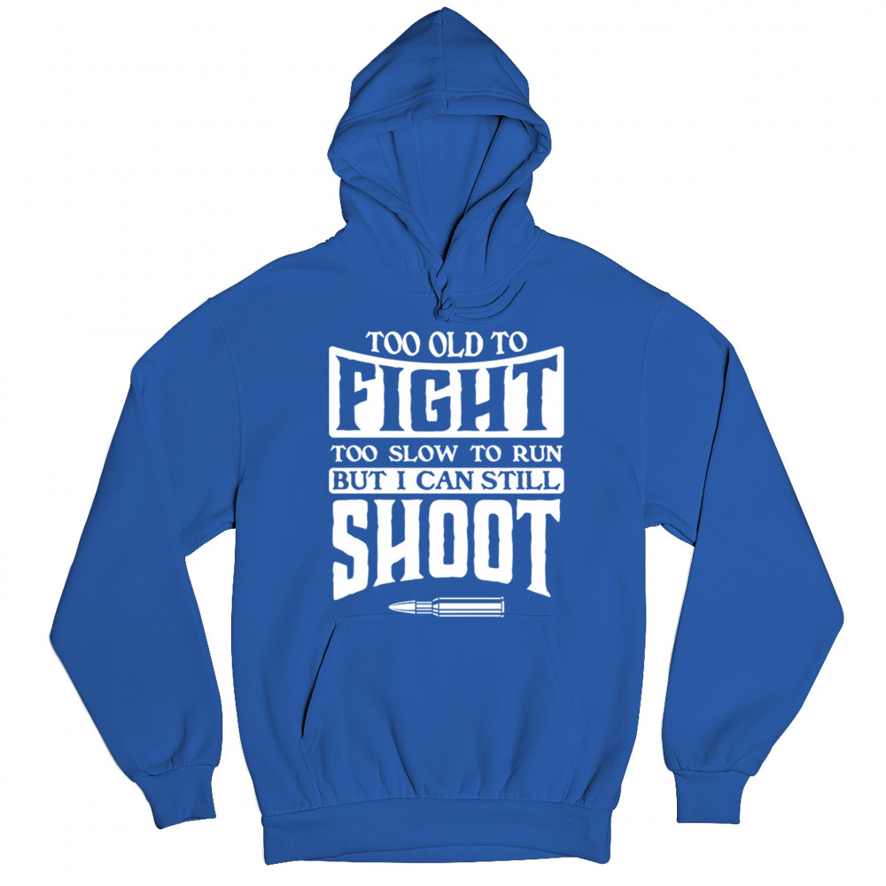 TOO SLOW TO RUN BUT CAN STILL SHOOT sweatshirt 2nd amendment gun right hoodie royal blue