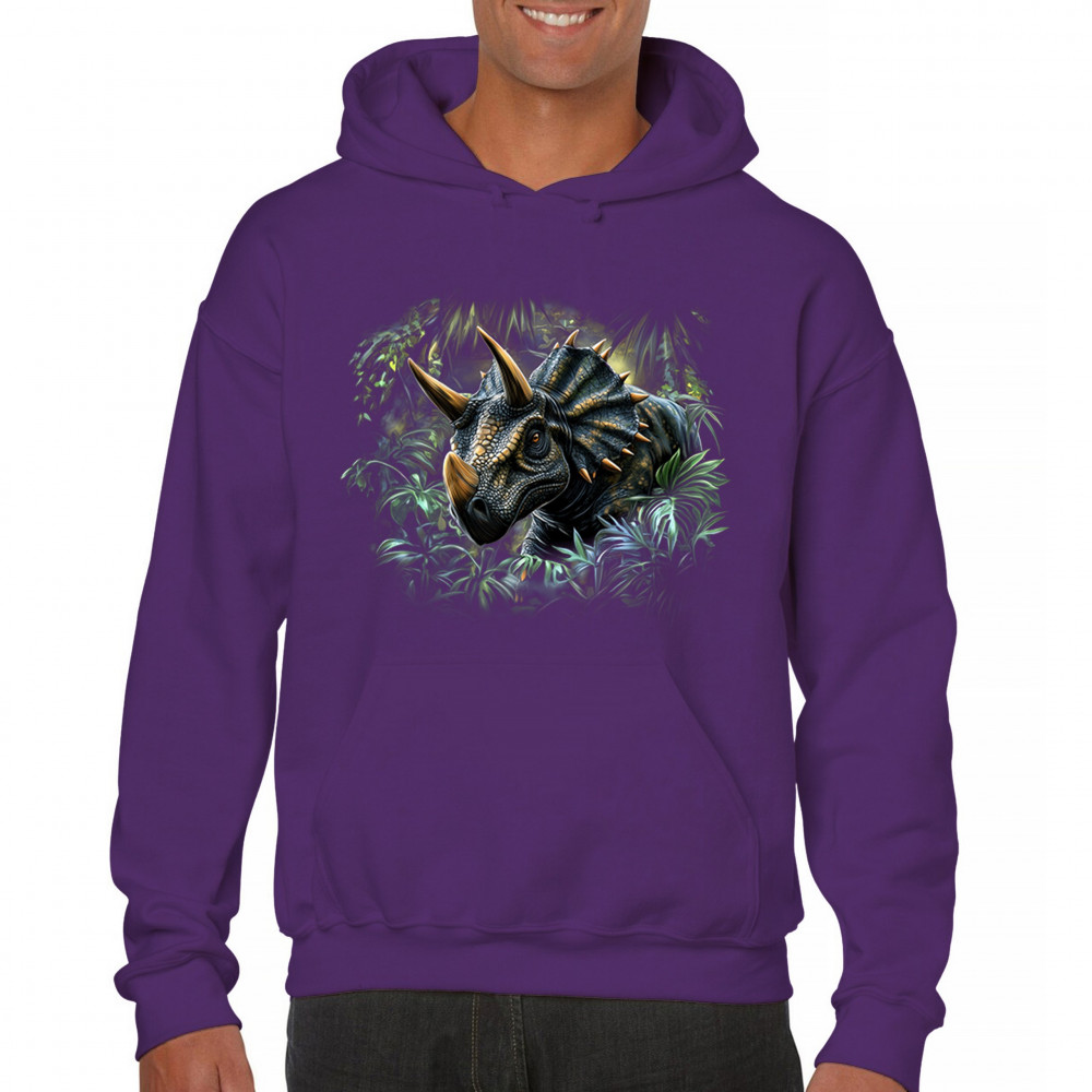 Charge into the past with this vivid triceratops design. Featuring a hyper-detailed horned dinosaur surrounded by jungle leaves, this design is perfect for dino lovers, fossil enthusiasts, and anyone fascinated by prehistoric beasts. Great for Jurassic parties, safari parks, or museum visits, it brings ancient strength to life.