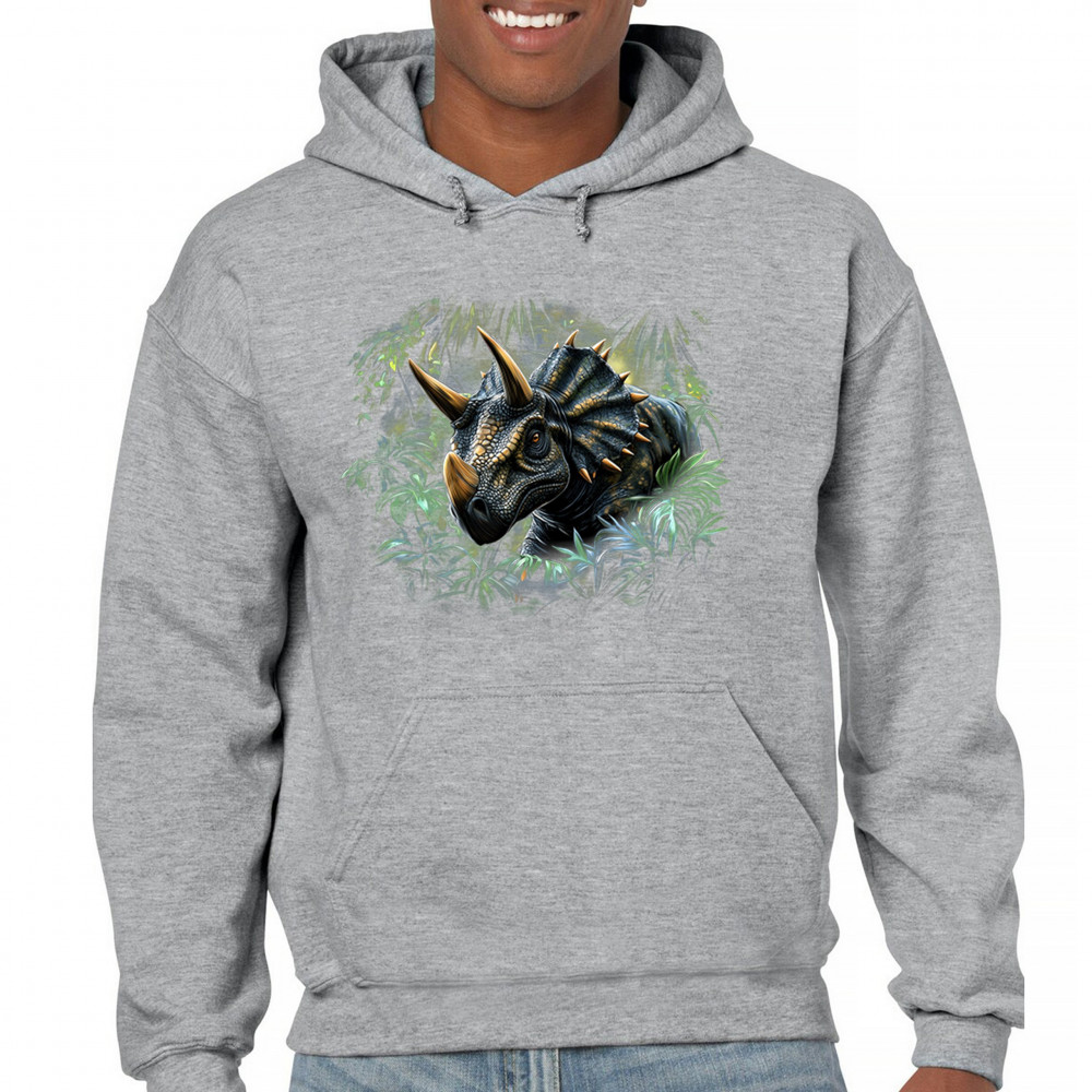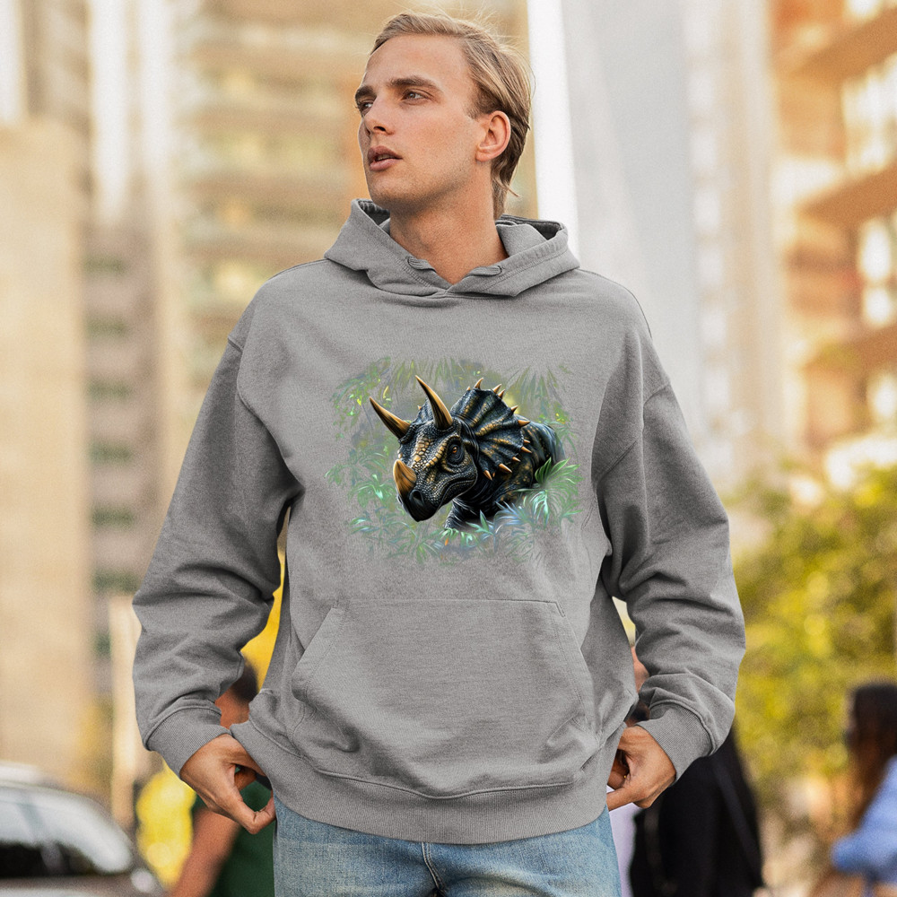 Charge into the past with this vivid triceratops design. Featuring a hyper-detailed horned dinosaur surrounded by jungle leaves, this design is perfect for dino lovers, fossil enthusiasts, and anyone fascinated by prehistoric beasts. Great for Jurassic parties, safari parks, or museum visits, it brings ancient strength to life.