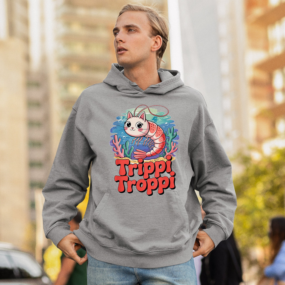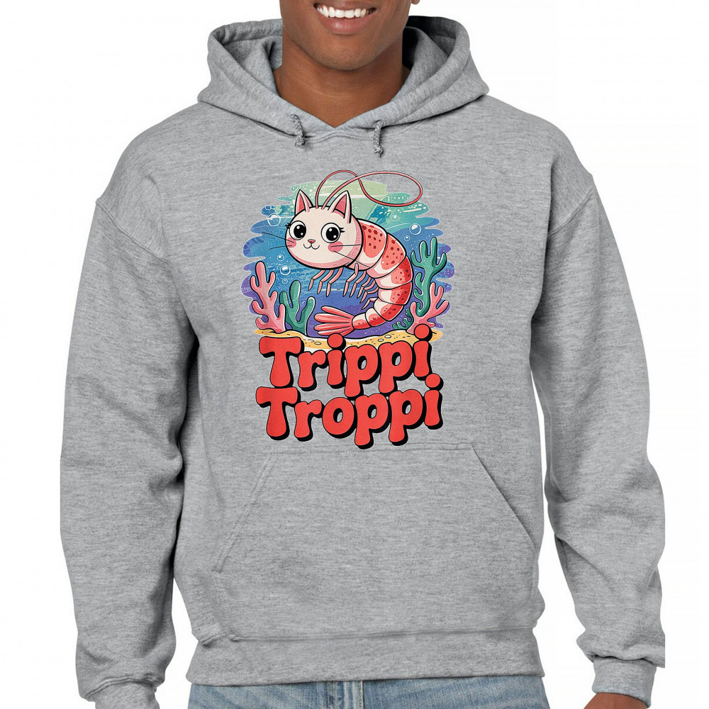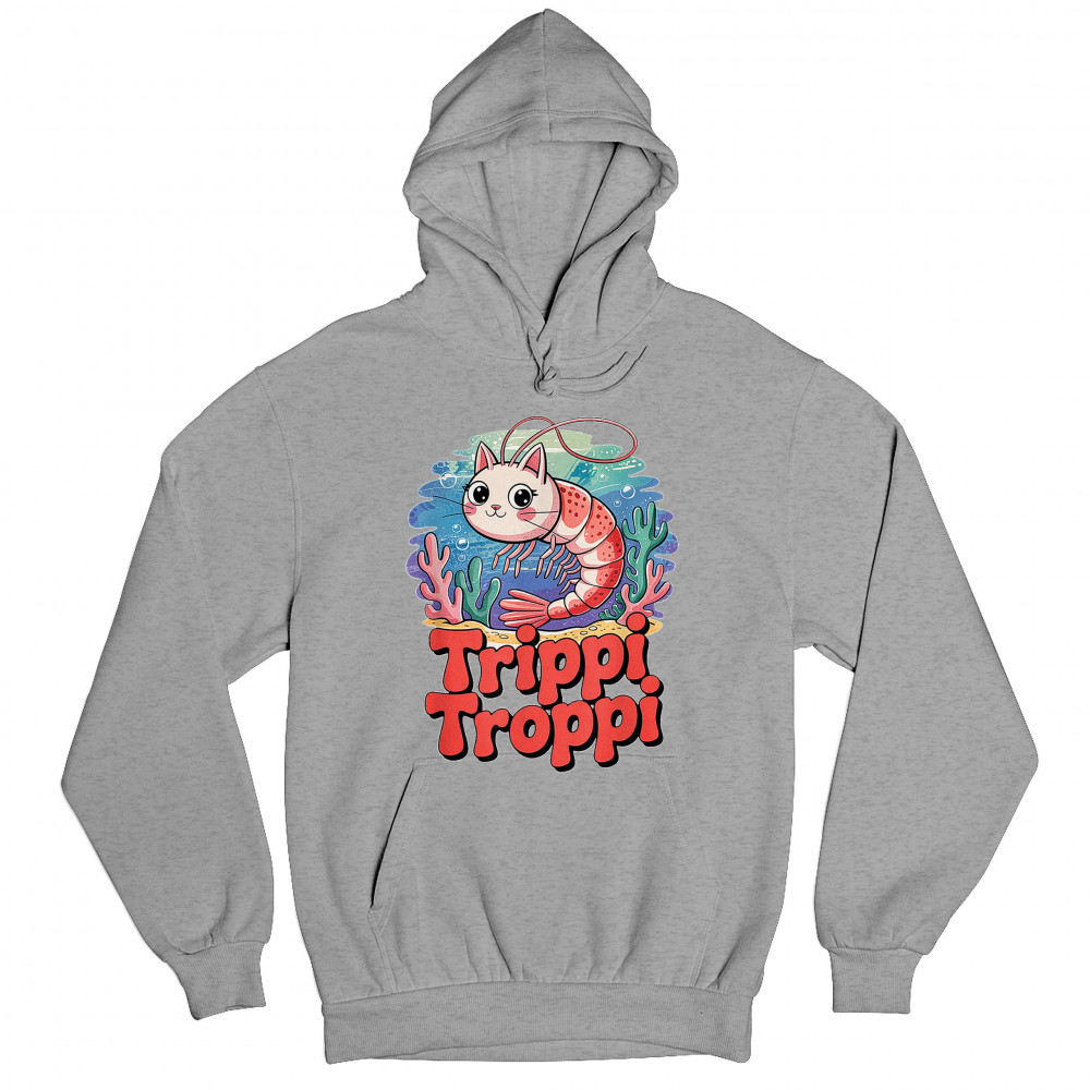 TRIPPI TROPPI SHRIM CAT unisex hoodie italian brainrot gen z alpha meme gray